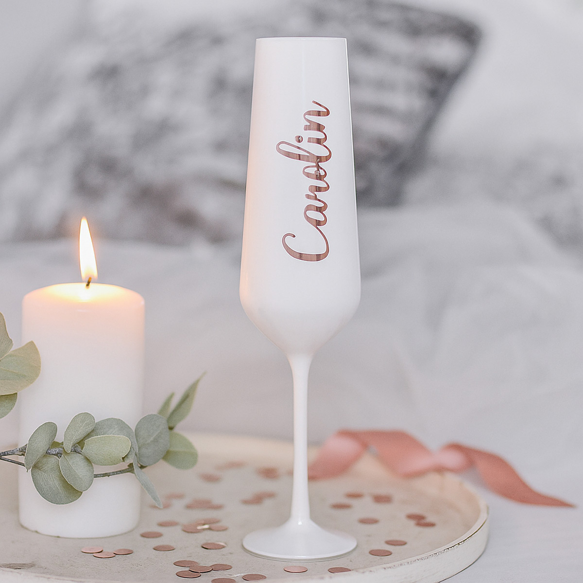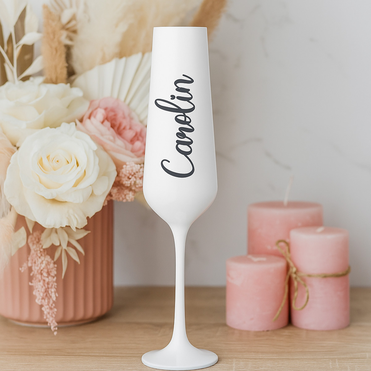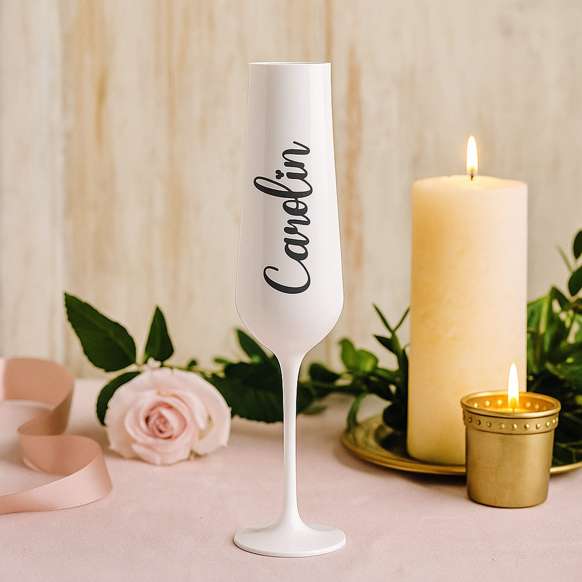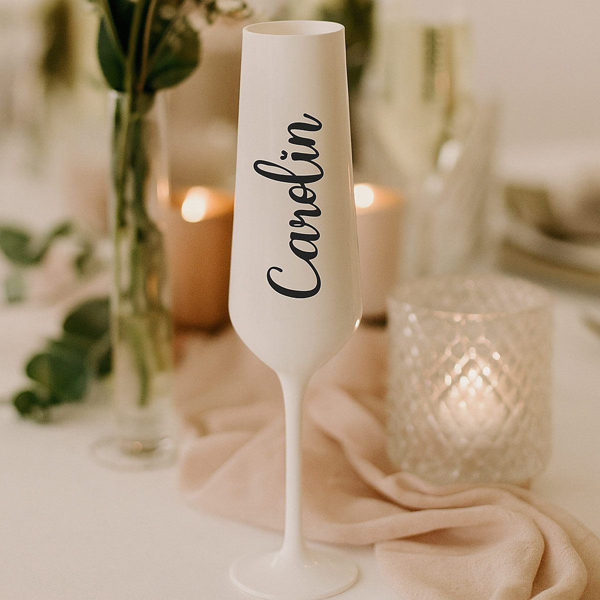 Überrasche deine Liebsten mit einem eleganten weißen Kristall-Sektglas, das individuell mit dem Wunschname veredelt wird. Ob für die Hochzeit, die Trauzeugin, Junggesellinnenabschied (JGA), Brautparty oder Geburtstag – dieses Glas macht jeden Moment unvergesslich.