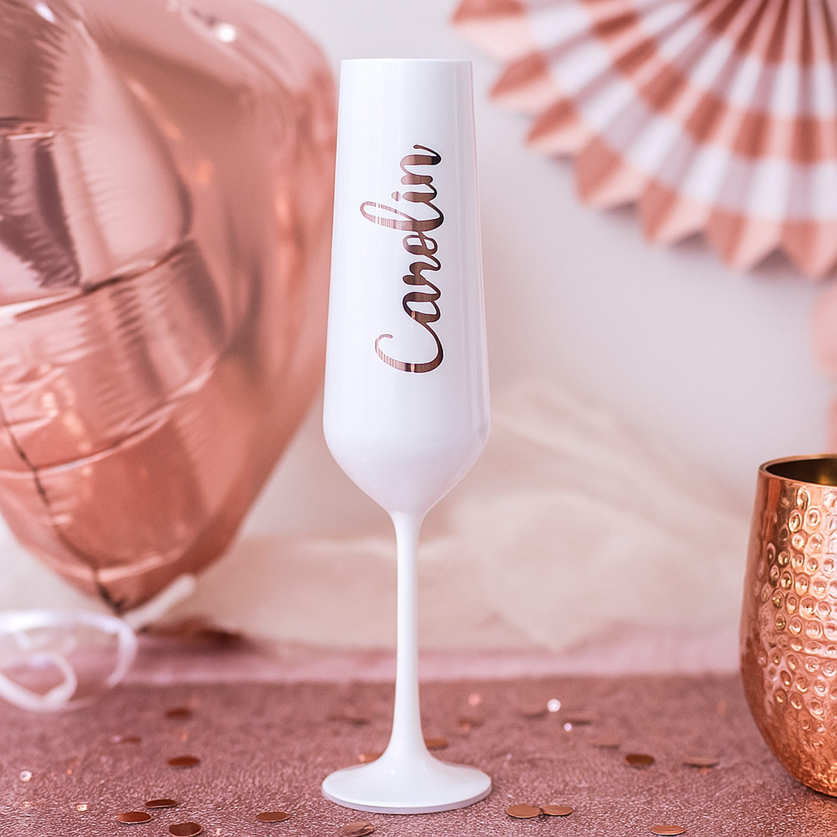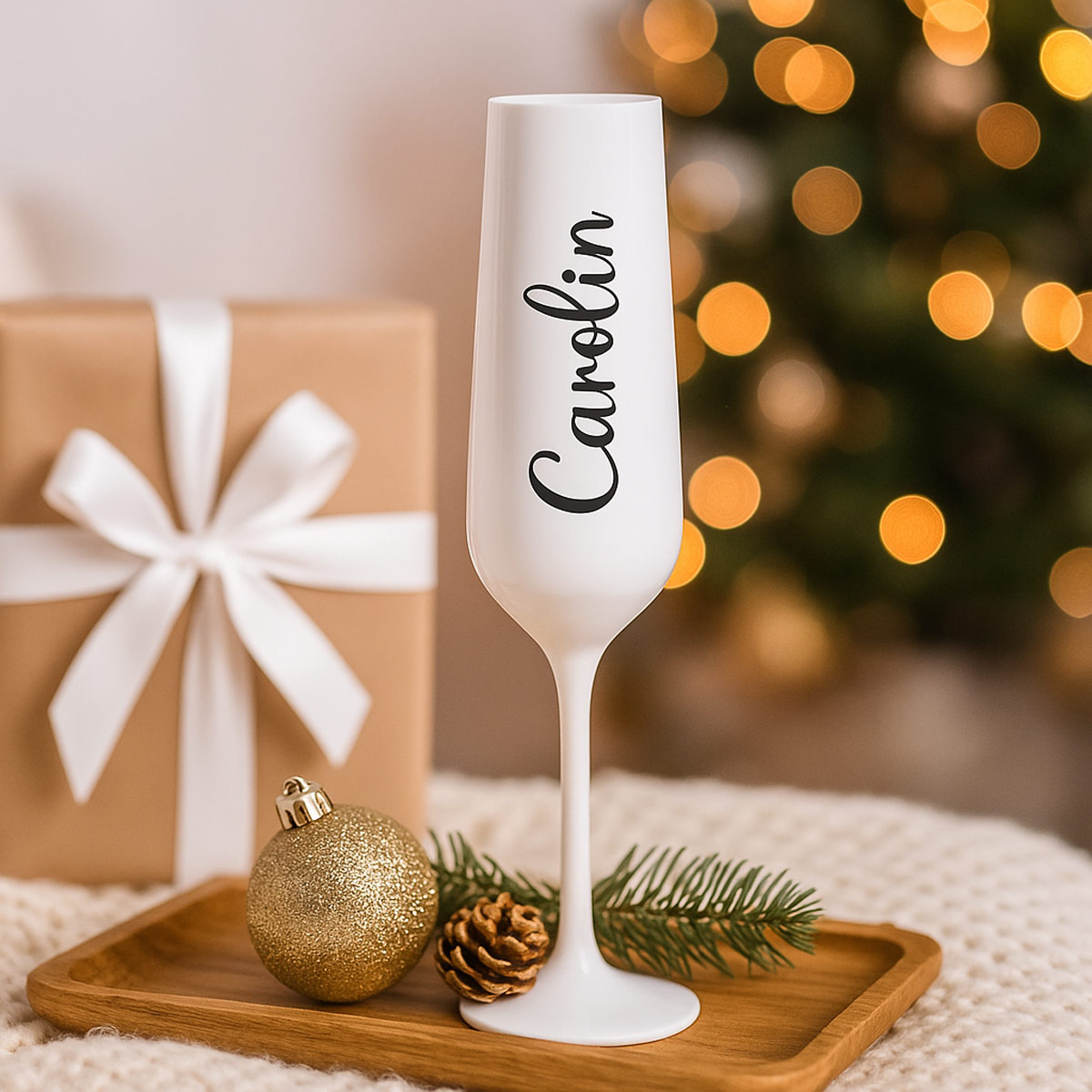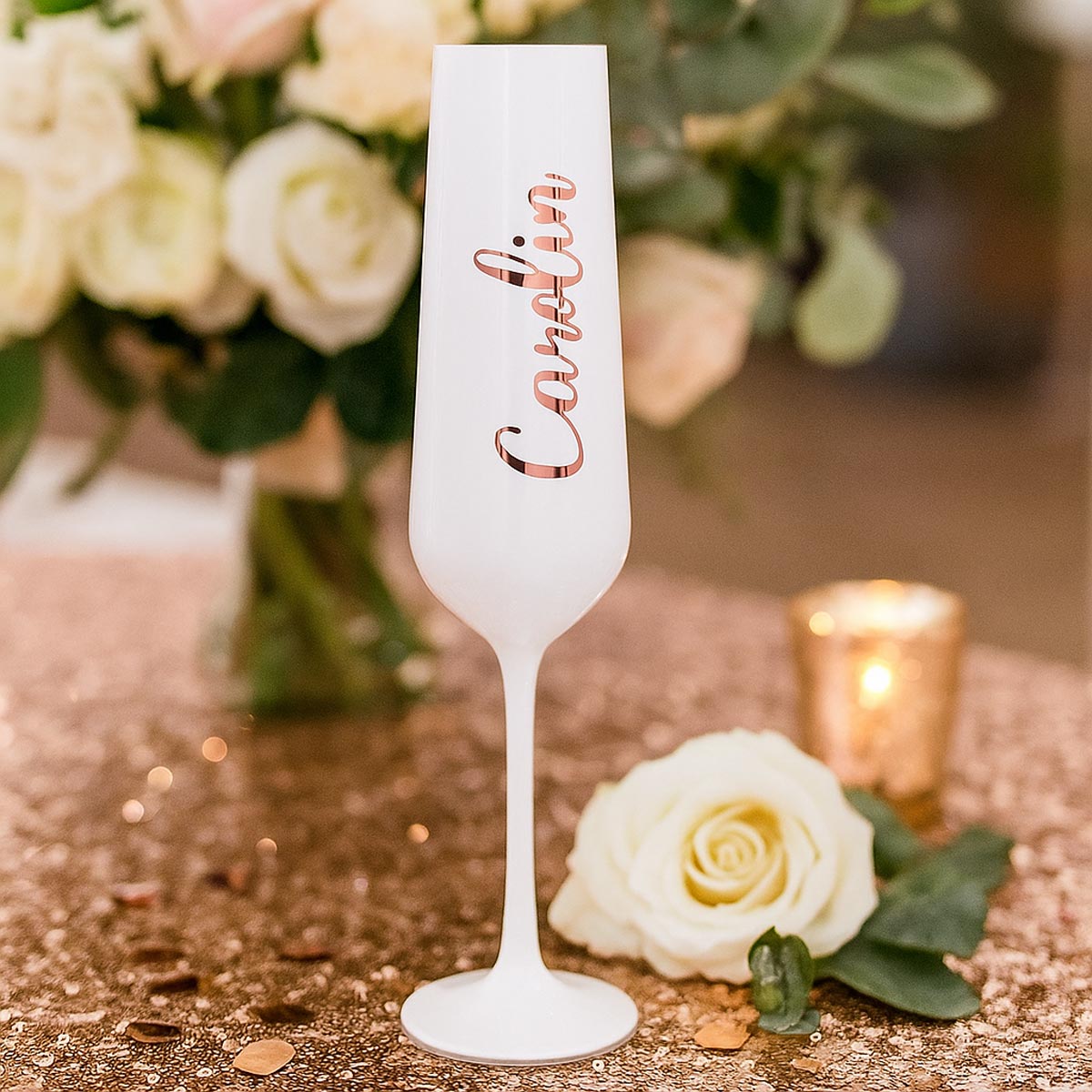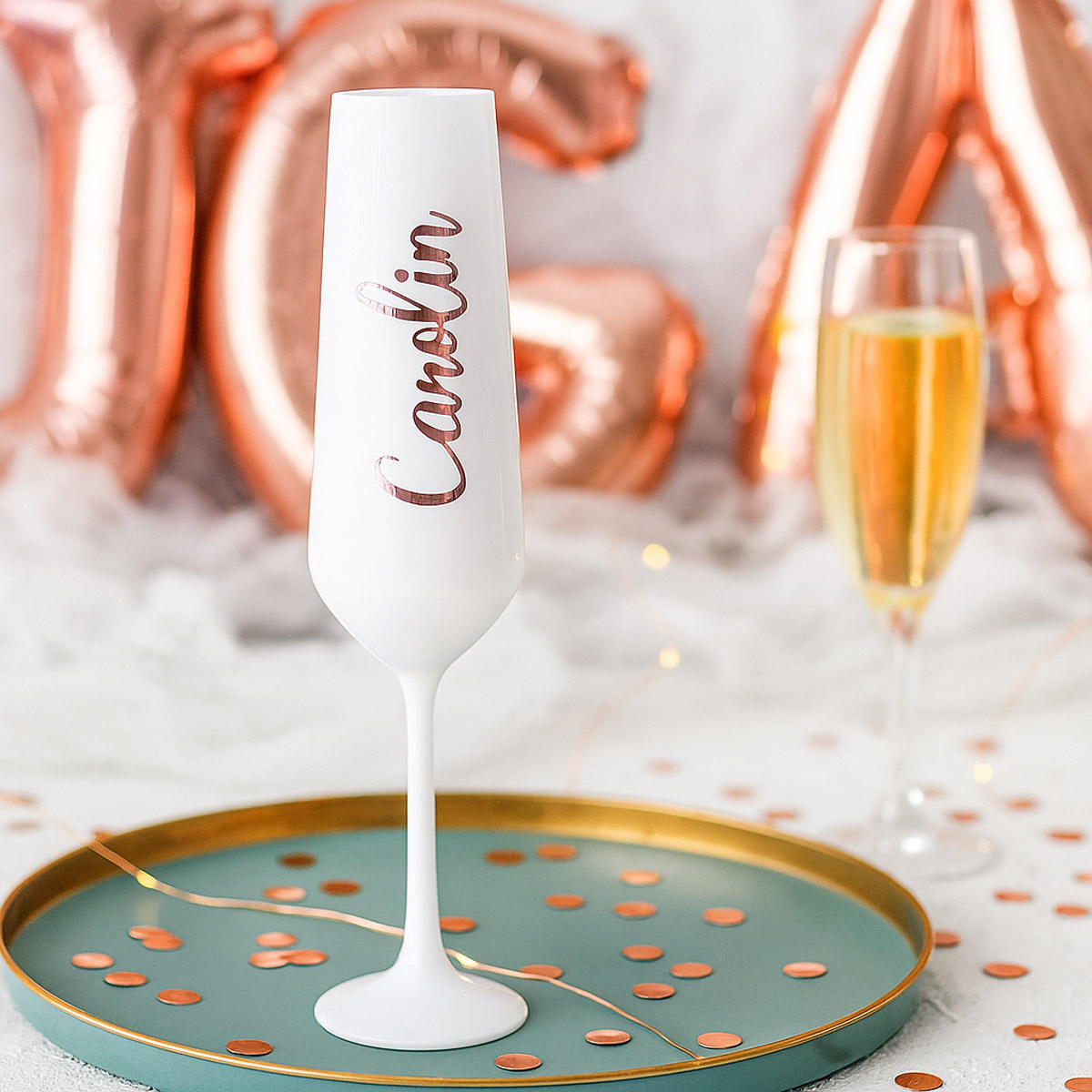Überrasche deine Liebsten mit einem eleganten weißen Kristall-Sektglas, das individuell mit dem Wunschname veredelt wird. Ob für die Hochzeit, die Trauzeugin, Junggesellinnenabschied (JGA), Brautparty oder Geburtstag – dieses Glas macht jeden Moment unvergesslich.
