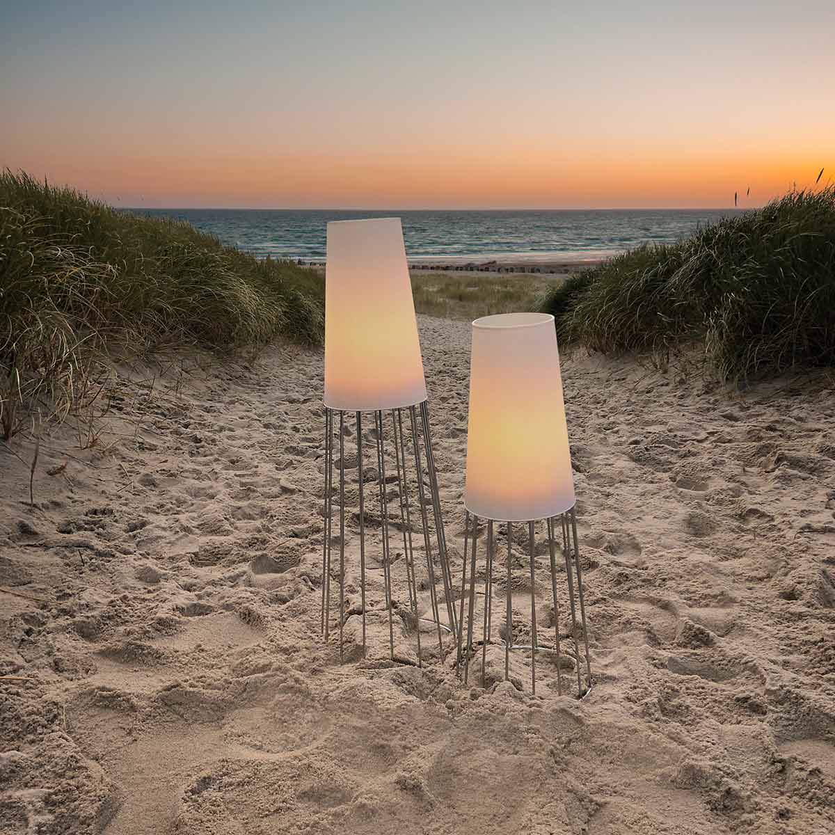 LIGHTHOUSE ist der (!) Hingucker für den Garten. Teelichter oder Blockkerzen sorgen hinter dem weiß gefärbten Glas für angenehm warme Lichteffekte. Und das in 2 wahrhaft beeindruckenden Größen (60 cm, 75 cm).