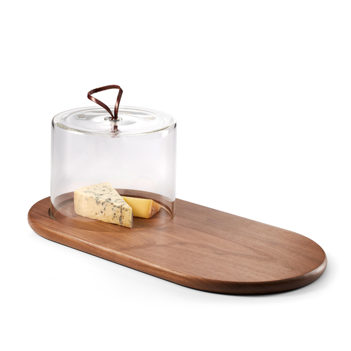Der abschließende Gang eines jeden fulminanten Menüs wird durch dieses Brett aus edlem Walnussholz regelrecht zelebriert. Keine Sorge: Selbst die zartesten Nasen werden dabei durch die formschöne Glasglocke mit Lederbändchen hinreichend geschont.