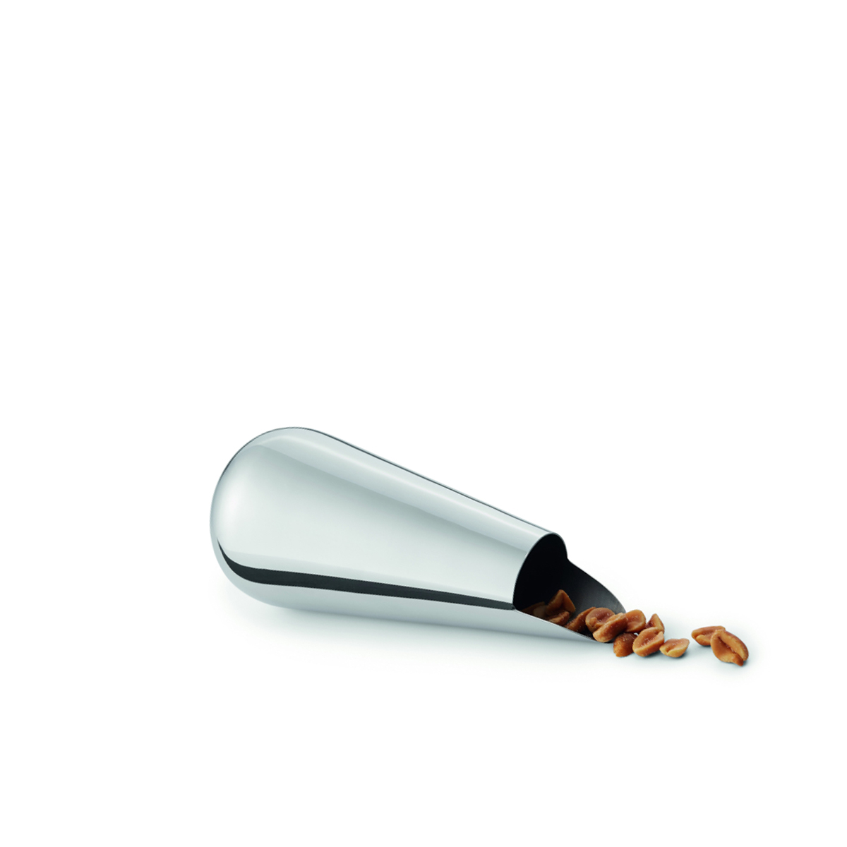 Wer hätte gedacht, dass Schlussmachen so schön sein kann? Denn dank des mehrfach ausgezeichneten Designs von Mario Taepper ist es endgültig aus und vorbei mit dem unhygienischen Herumgrabbeln in fremder Leute Erdnuss-Schälchen, hurra! Ab sofort wird jede Art von filigranem Naschwerk mit einem lockeren Schwenk elegant und ohne Umweg auf die Handfläche befördert. Das hat Stil und jede Menge Geschmack sowieso.