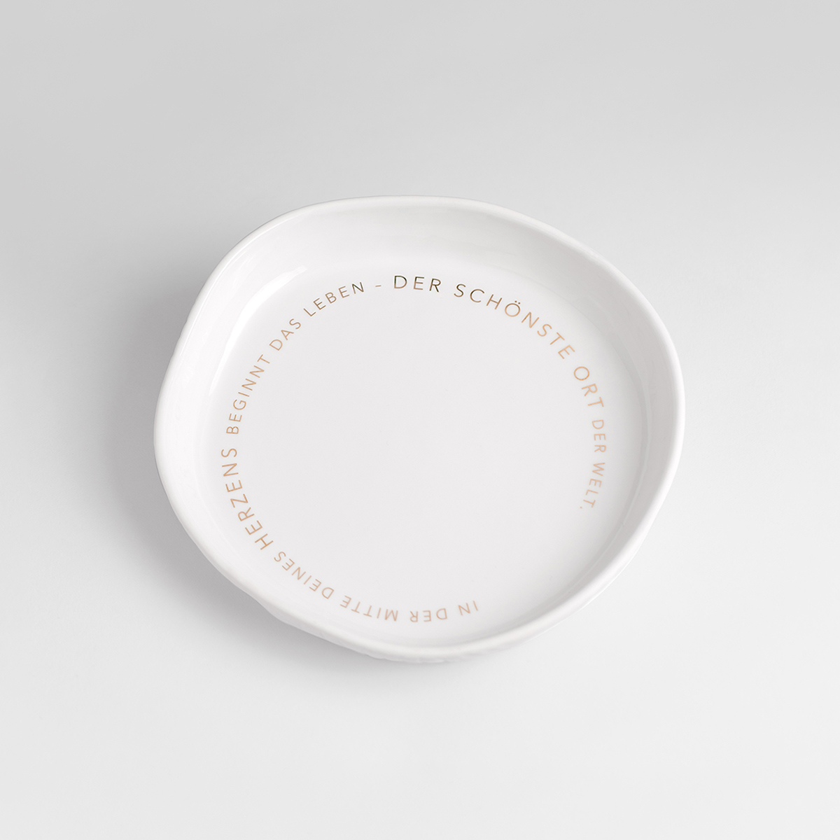 - Dekorative Porzellanschale mit Goldschrift