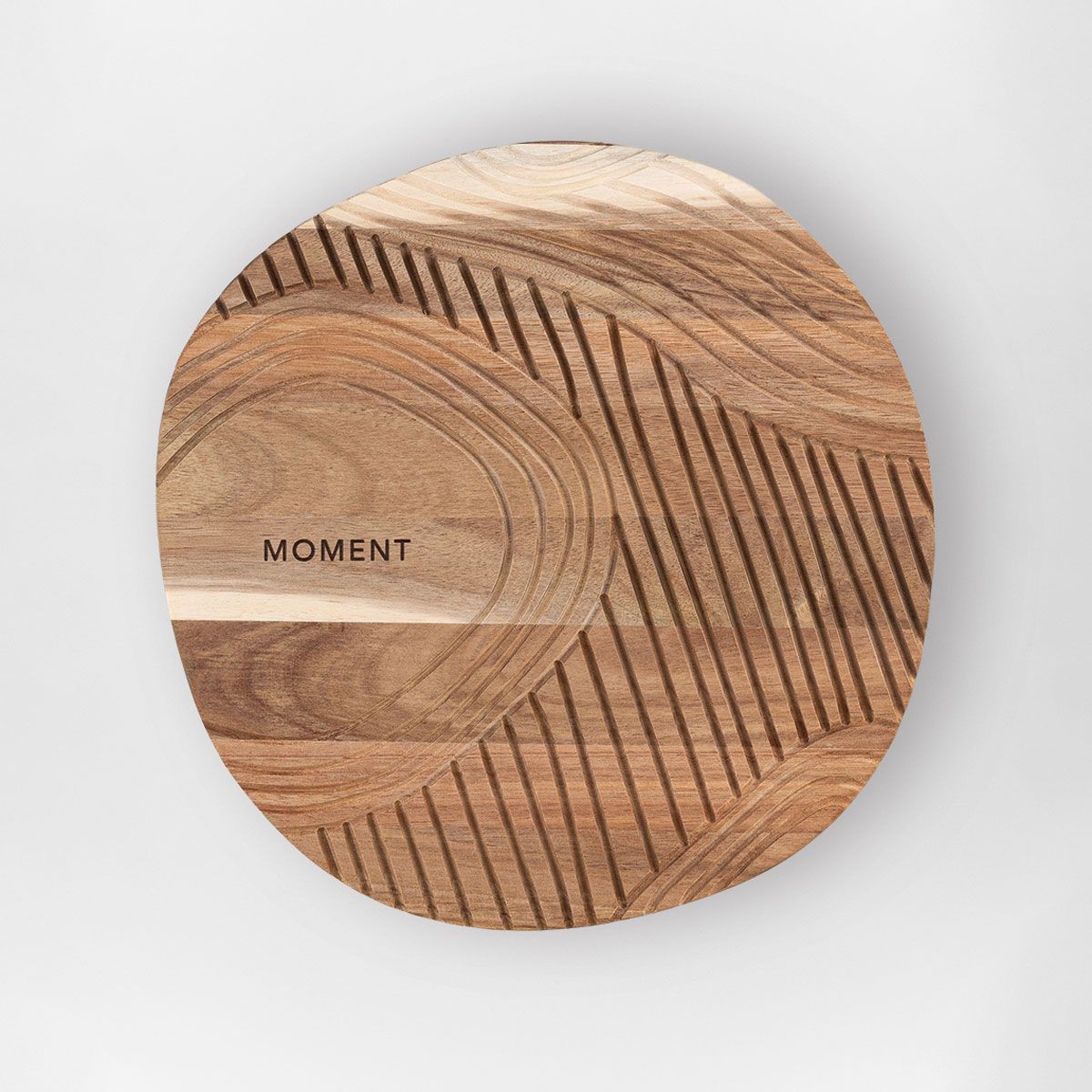 Dieses hochwertige Holztablett aus unbehandelter Akazie überzeugt durch seine natürliche Ausstrahlung und kunstvolle Verarbeitung. Gefertigt aus robustem Holz und veredelt mit einer dekorativen Gravur, wird es zum stilvollen Begleiter im Alltag. Die runde Form und die fein gearbeiteten Linienmuster verleihen dem Tablett eine moderne, zugleich warme Optik. Der dezente Schriftzug "Moment" unterstreicht den besonderen Charakter und lädt dazu ein, kleine Augenblicke bewusst zu genießen.