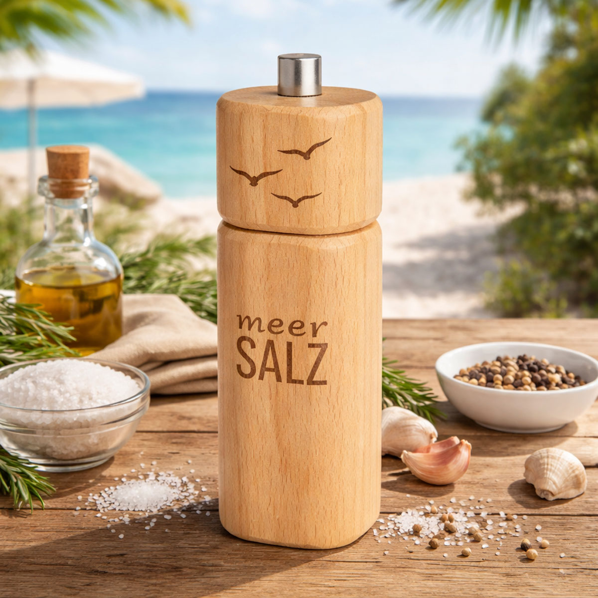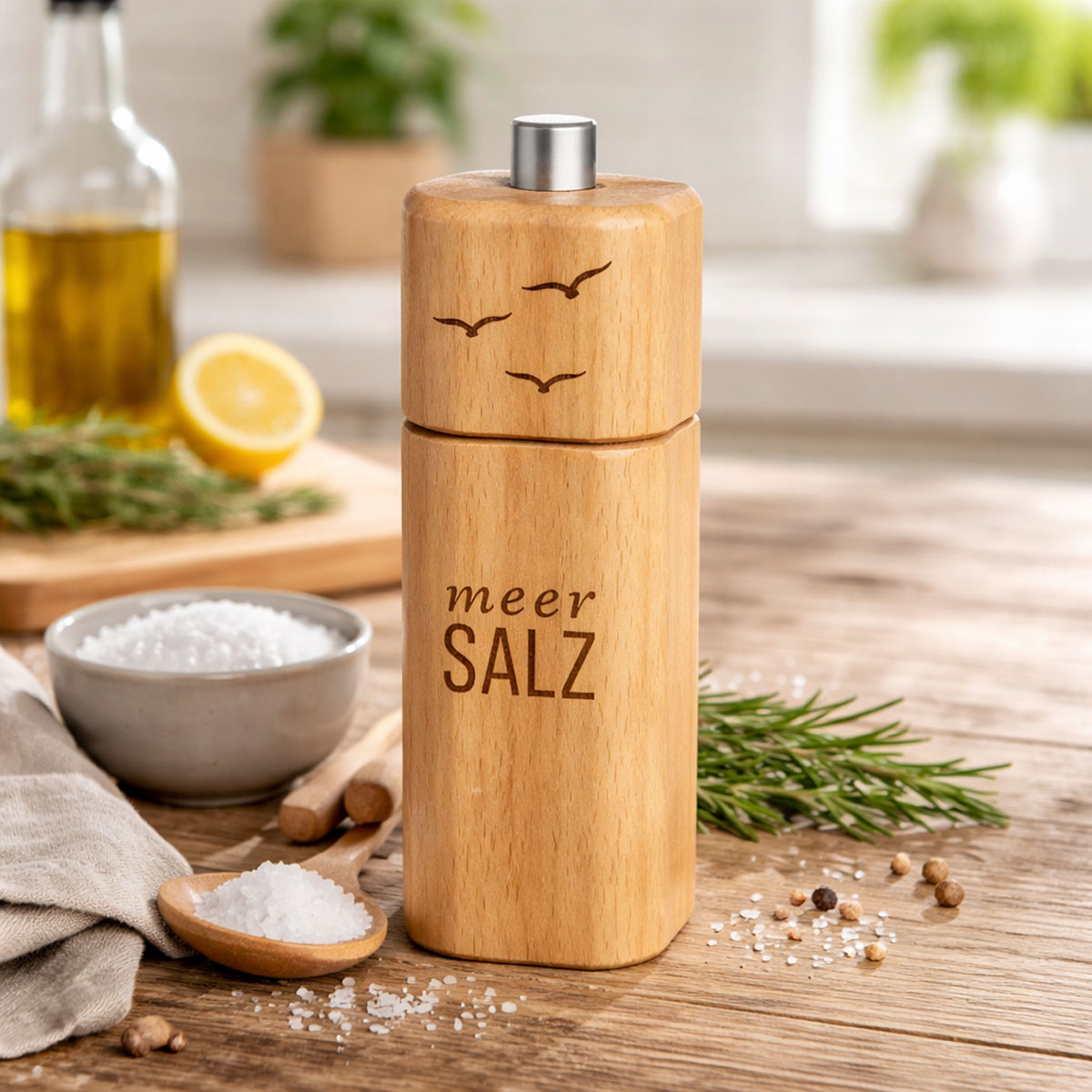 Erhältlich sind die Varianten 'Meer Salz' und 'Scharfe Brise', die sich ideal miteinander kombinieren lassen. Ob als stilvolle Ergänzung für die eigene Küche oder als liebevolle Geschenkidee für Genießer und Design-Fans – die Mühlen aus der Serie Meeresrauschen sind ein echter Blickfang. Durch ihre dekorative Gestaltung eignen sich die Salz- und Pfeffermühlen perfekt für moderne, natürliche und maritime Wohnkonzepte. Sie verbinden nützliche Küchenhelfer mit dem charakteristischen Design von Räder.