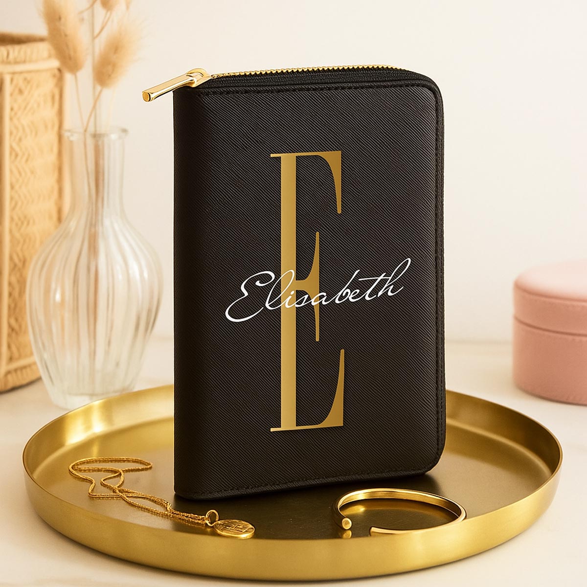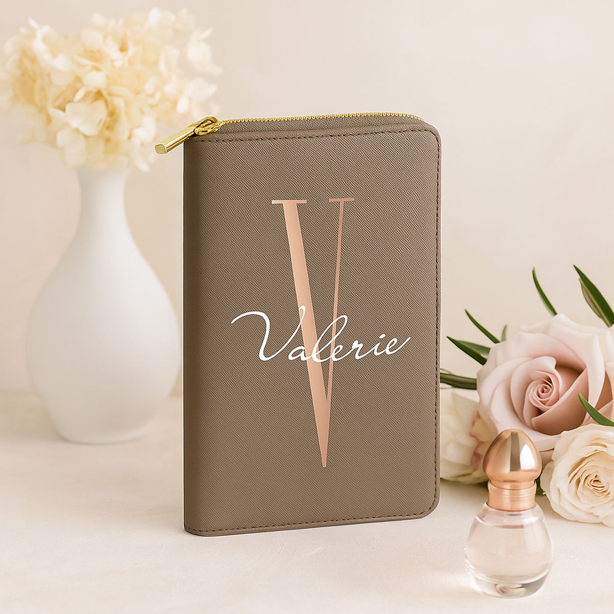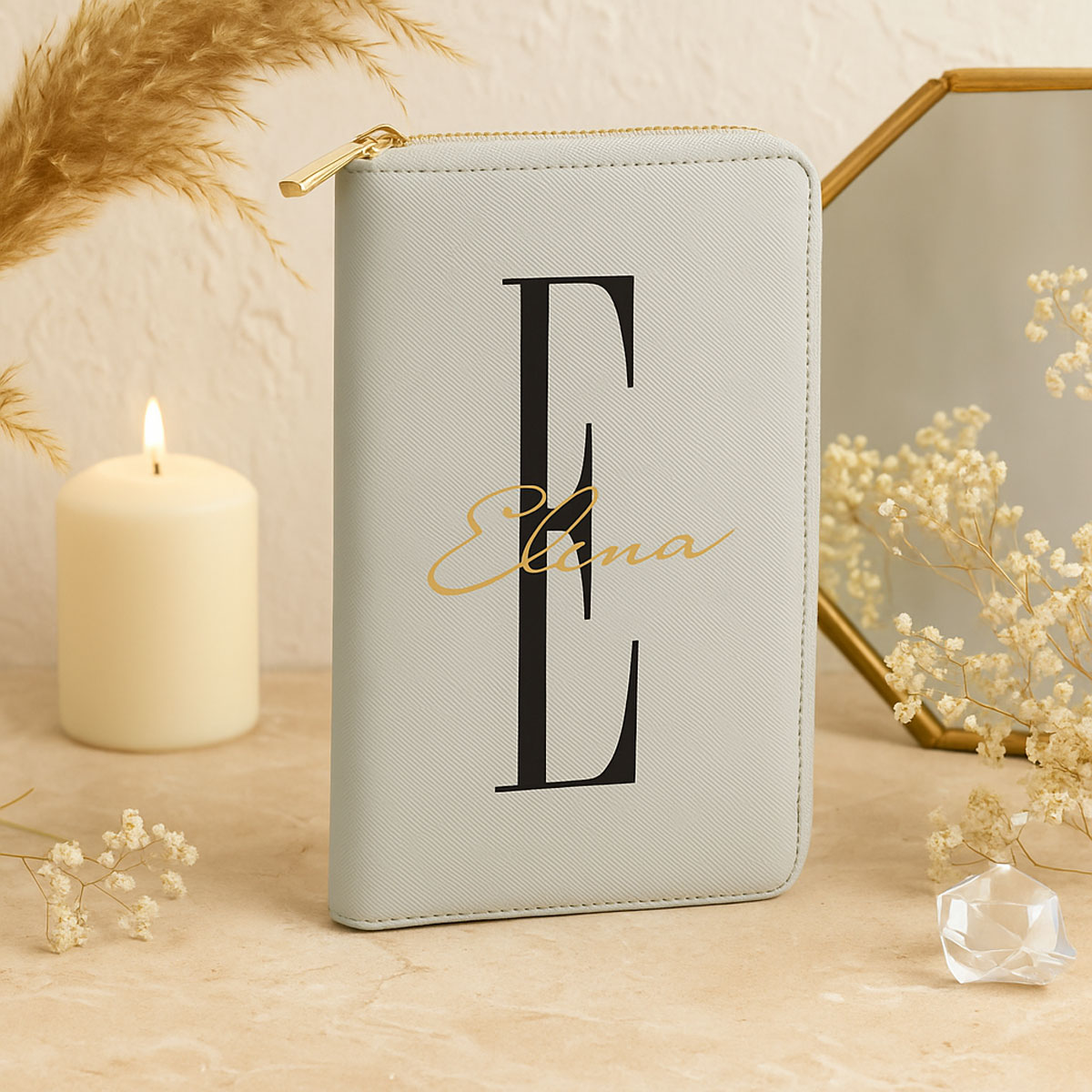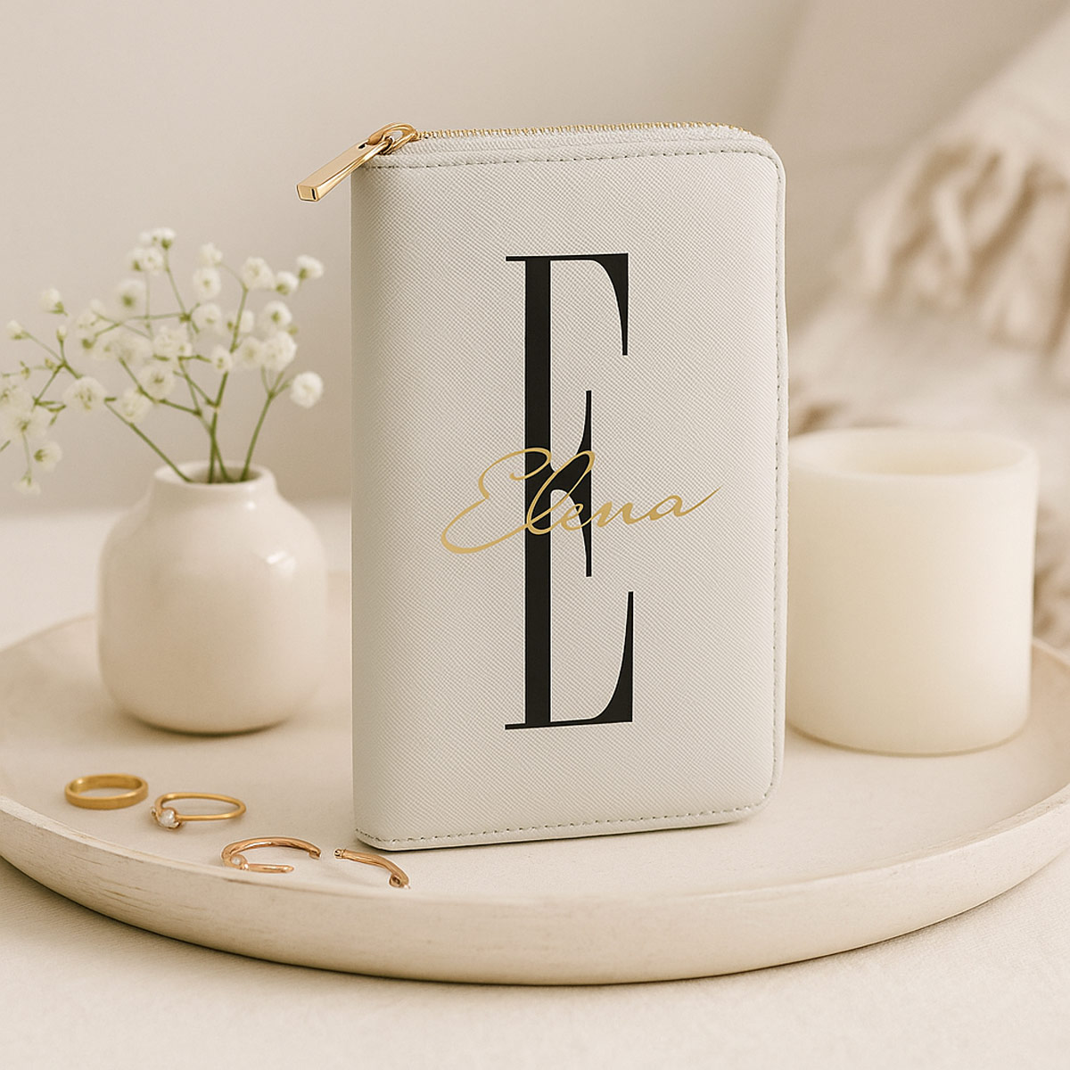 Durch die Personalisierung mit Name und Initial wird aus dem praktischen Reise-Accessoire ein ganz besonderes Geschenk – ideal für Frauen, Mütter, Freundinnen oder Bräute.