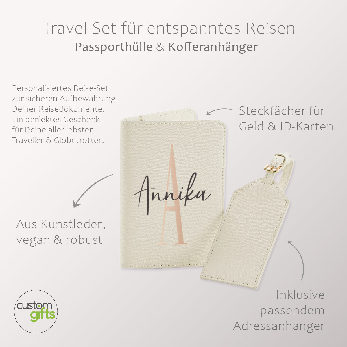 Ob für den Wellnessurlaub, Mädelsausflug, Roadtrip, Junggesellinnenabschied, die Abschlussfahrt, Abi-Reise oder sonstige Abenteuer - eine personalisierte Passhülle samt Gepäckanhänger ist das perfekte Reiseaccessoire. Eine bezaubernde Kombination von Stil mit praktischem Nutzen - so kannst Du alle nötigen Reiseunterlagen nicht nur griffbereit und sicher, sondern auch stylisch und dekorativ aufbewahren.
