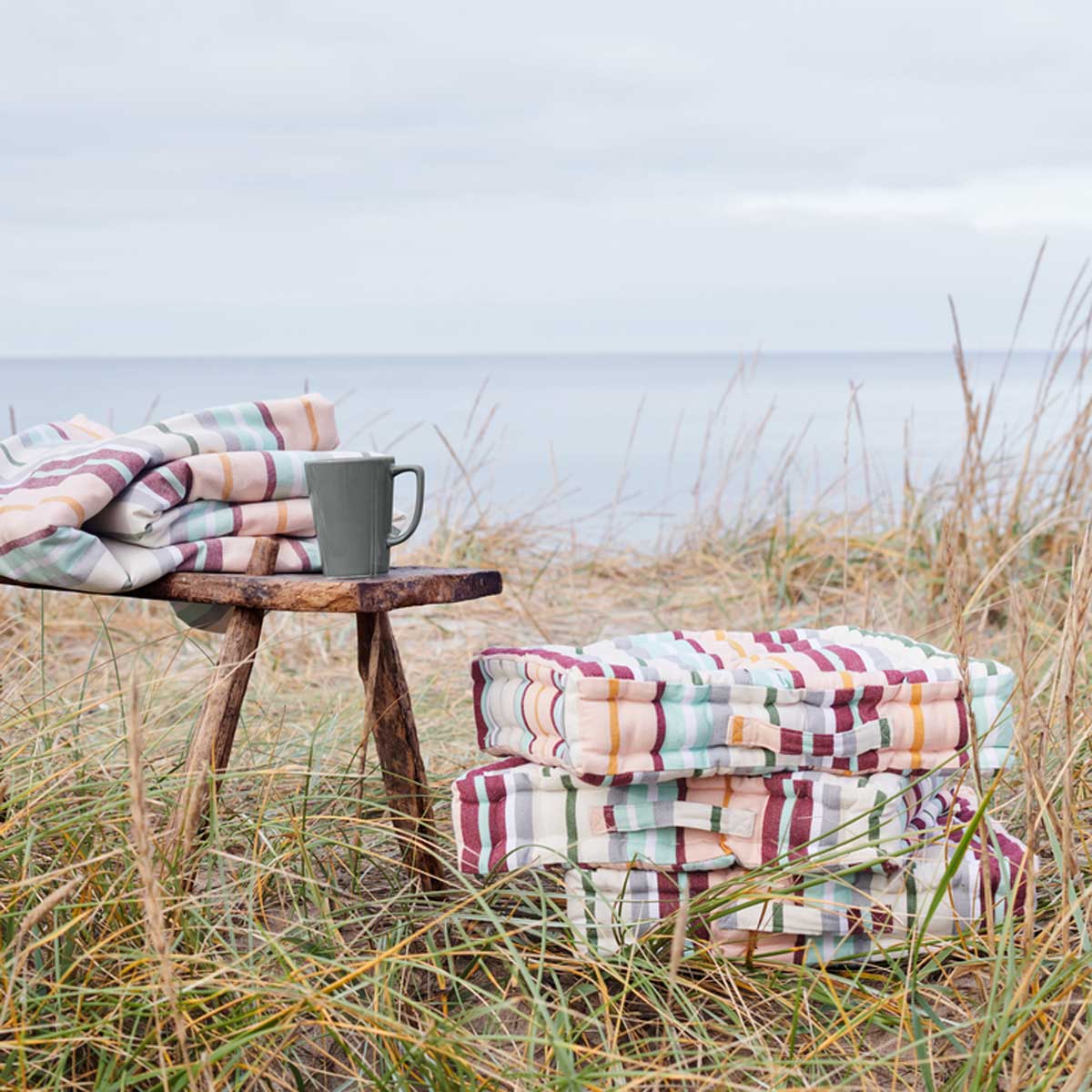 Die bunten Streifen schaffen eine fröhliche und sommerliche Atmosphäre. Ausgangspunkt für die Farben der Streifen sind die brandneuen farbigen Teller, Schalen und Becher der klassischen Grand Cru-Serie, die in den Farben Mint, Blush und Aschgrau erhältlich sind. Eine große und weiche Bettdecke ist ein Muss für den Sommer. Ob am Strand, auf der Wiese, in der Hängematte oder im Liegestuhl, eine Decke ist immer gut - entweder als Unterlage oder als Unterlage, wenn die Sonne untergeht, damit man die Sommerabende noch ein bisschen länger genießen kann. Die Outdoor Stripes Bettdecke von Rosendahl besteht aus GRS-zertifizierten, recycelten Materialien und ist ähnlich wie die Tischdecke und das Tischset in einem Streifenmuster gehalten.
