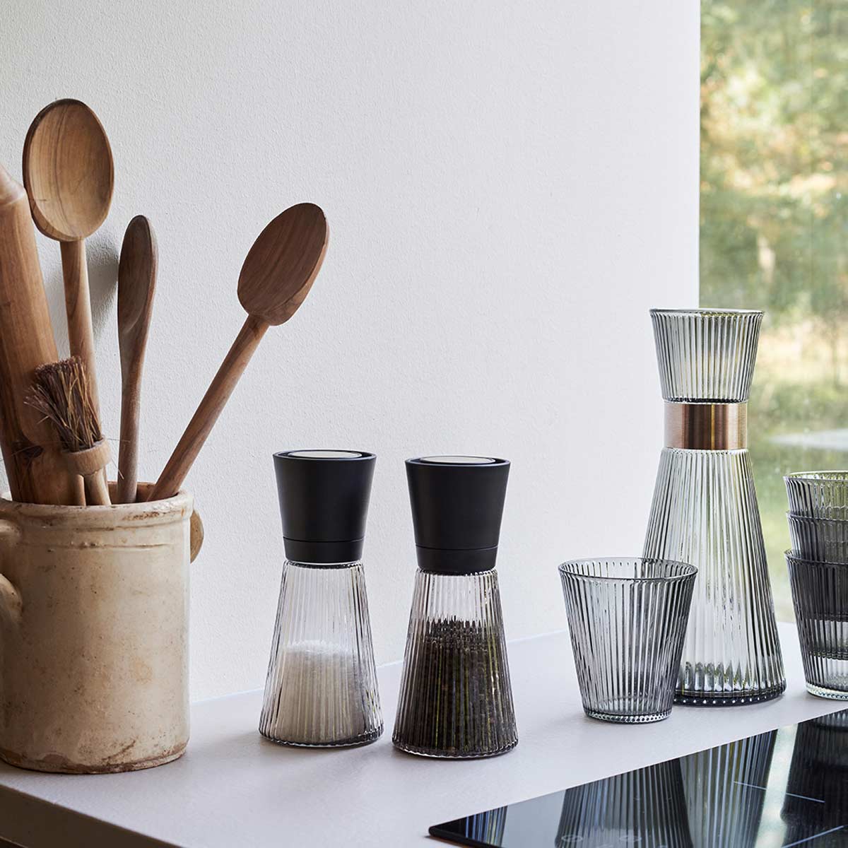 Schönes Qualitätsglas, ein eleganter dunkelgrauer Rauchfarbton, ein haltbares und funktionelles Oberteil aus schwarzem Kunststoff und patiniertem Stahl – und minimalistische Rillen. Mit der neuen Grand Cru Nouveau-Mühle aus Rauchglas erhalten Sie eine funktionelle, moderne und stilvolle Neuinterpretation der legendären Grand Cru-Serie.