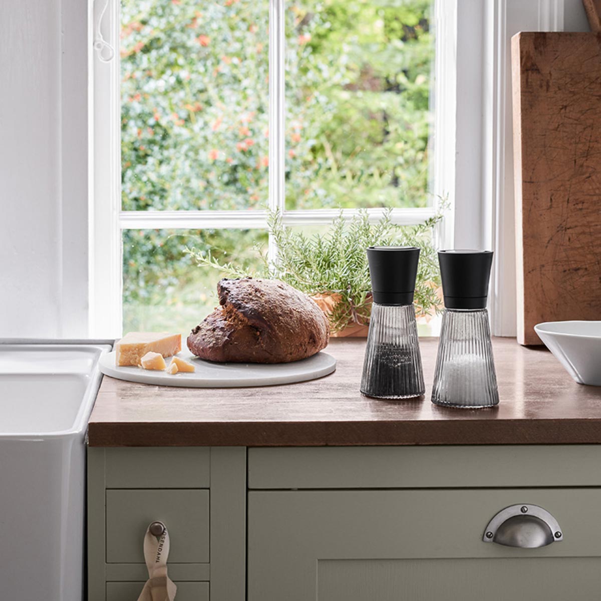 Das Rauchglas und das schwarze Oberteil sorgen für einen einzigartigen Look, der das Grand Cru-Design unterstreicht. Und wie bei der Vorgängerin, der klassischen Grand Cru-Mühle, ist das Mahlwerk oben auf der Grand Cru Nouveau-Mühle platziert – ein Design, das Ästhetik und Funktion miteinander mühelos in Einklang bringt, da man die Mühle auf den Esstisch stellen kann, ohne dass dort etwas verschüttet wird.