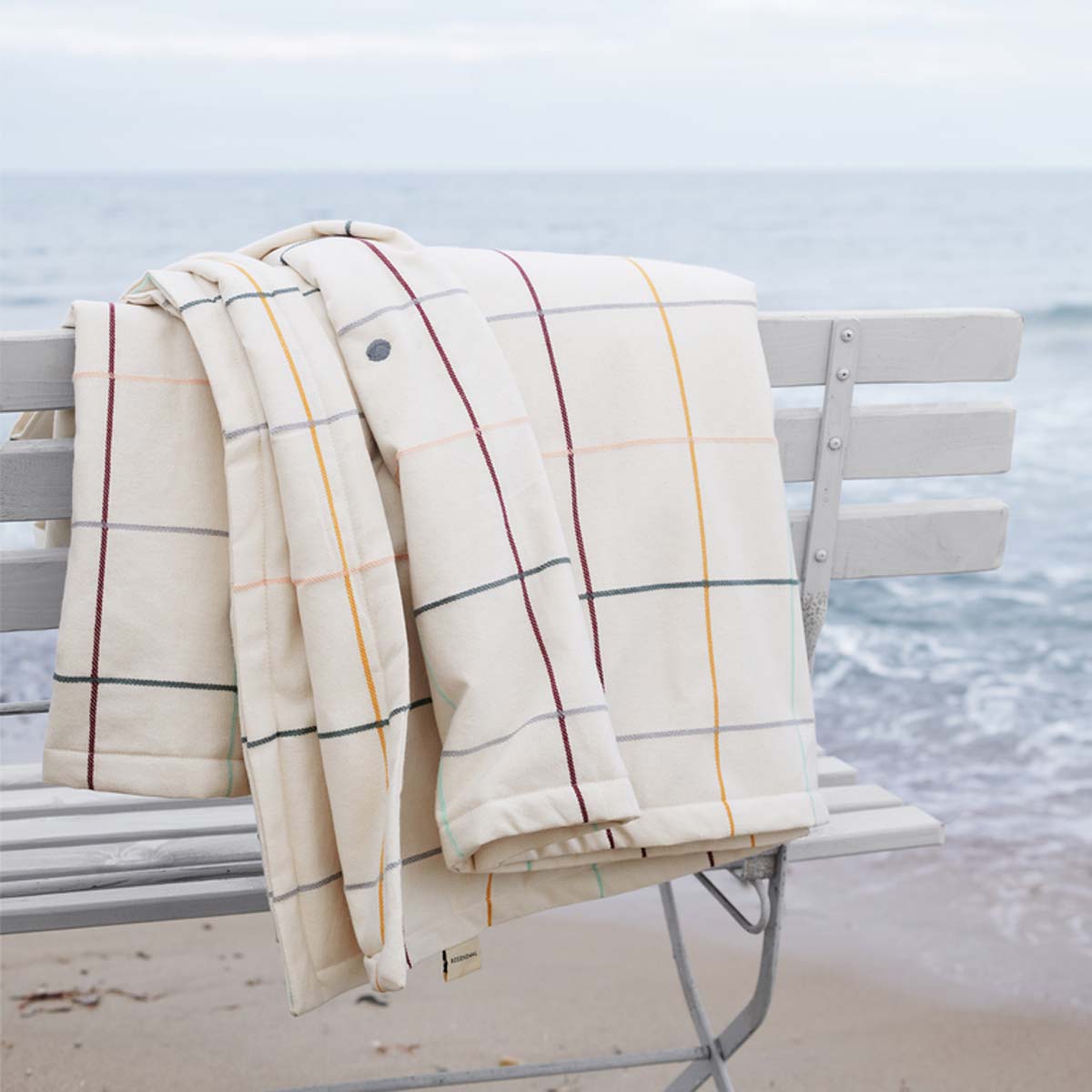 Eine große und weiche Steppdecke ist ein Must-have für den Sommer. Ob am Strand, auf der Wiese, in der Hängematte oder im Liegestuhl, eine Steppdecke ist immer gut - entweder als Unterlage oder zum Einwickeln, wenn die Sonne untergeht, damit man die Sommerabende noch ein bisschen länger genießen kann. Das mehrfarbige Karomuster schafft eine fröhliche und sommerliche Atmosphäre mit einem einfachen und grafischen Ausdruck, und der Ausgangspunkt für die Farben der Streifen sind die brandneuen farbigen Teller, Schalen und Becher der klassischen Grand Cru-Serie, die in Mint, Blush und Aschgrau erhältlich sind.