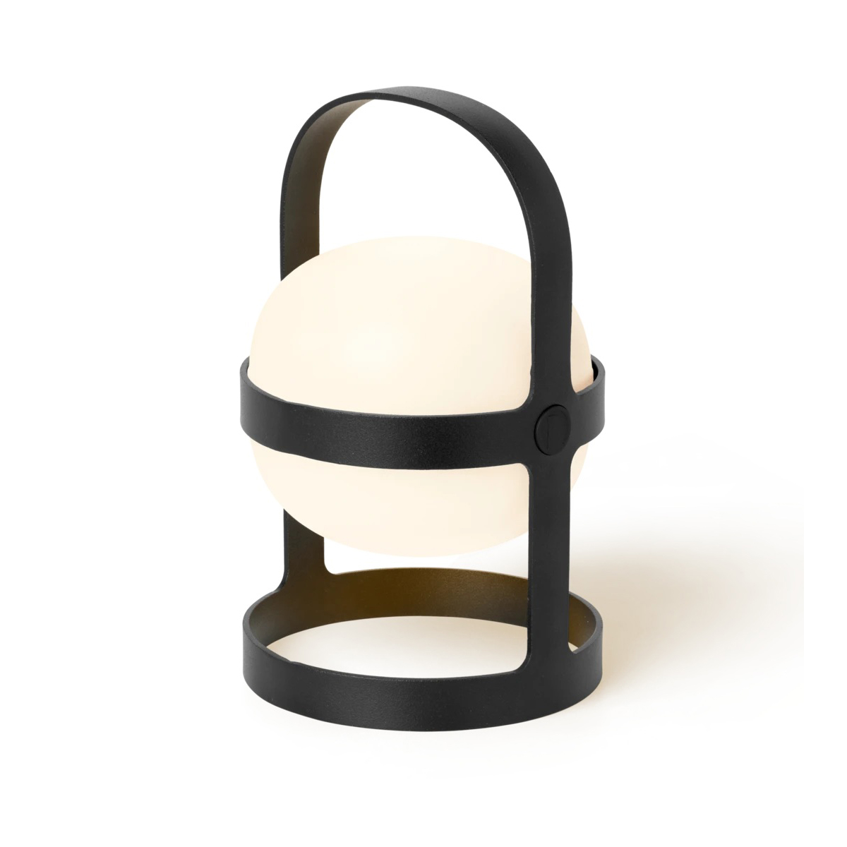 Die Leuchte Soft Spot Solar ist kabellos und kann auf dem Esstisch, auf der Terrasse und überall dort verwendet werden, wo eine gemütliche Atmosphäre gewünscht wird. Die schwebende Leuchtkugel ist von einem armeegrünen Metallrahmen umgeben, der sie auf elegante Weise schützt und gleichzeitig als Ständer und Griff dient. Die Lampe ist wetter- und windbeständig und kann bei Temperaturen bis zu minus 20 Grad im Freien verwendet werden. Die Laterne ist in drei unterschiedlichen Größen erhältlich. Hier ist die kleine Laterne mit einer Höhe von 18,5 cm zu sehen.