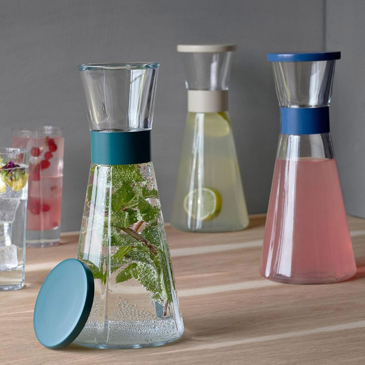 Grand Cru-Karaffen in Farben – ein elegantes und dezentes Farbupdate eines echten Designklassikers. Mit der Rosendahl Grand Cru-Karaffe, die mit Details in einem natürlichen und harmonischen Ozeanblau verziert ist, erhalten Sie eine stilvolle Weiterentwicklung der ikonischen Grand Cru-Karaffe in zeitloser Ästhetik und einer Farbpalette, die ein Gefühl von zurückhaltendem Luxus vermittelt, wo Himmel auf Meer trifft. Die Farbe ist neu und modern, und die Karaffe kommt natürlich mit einem farblich aktualisierten Deckel, der das Wasser im Kühlschrank schön und funktional frisch hält, aber Sie werden die Silhouette der klassischen Rosendahl Grand Cru-Karaffe leicht erkennen.