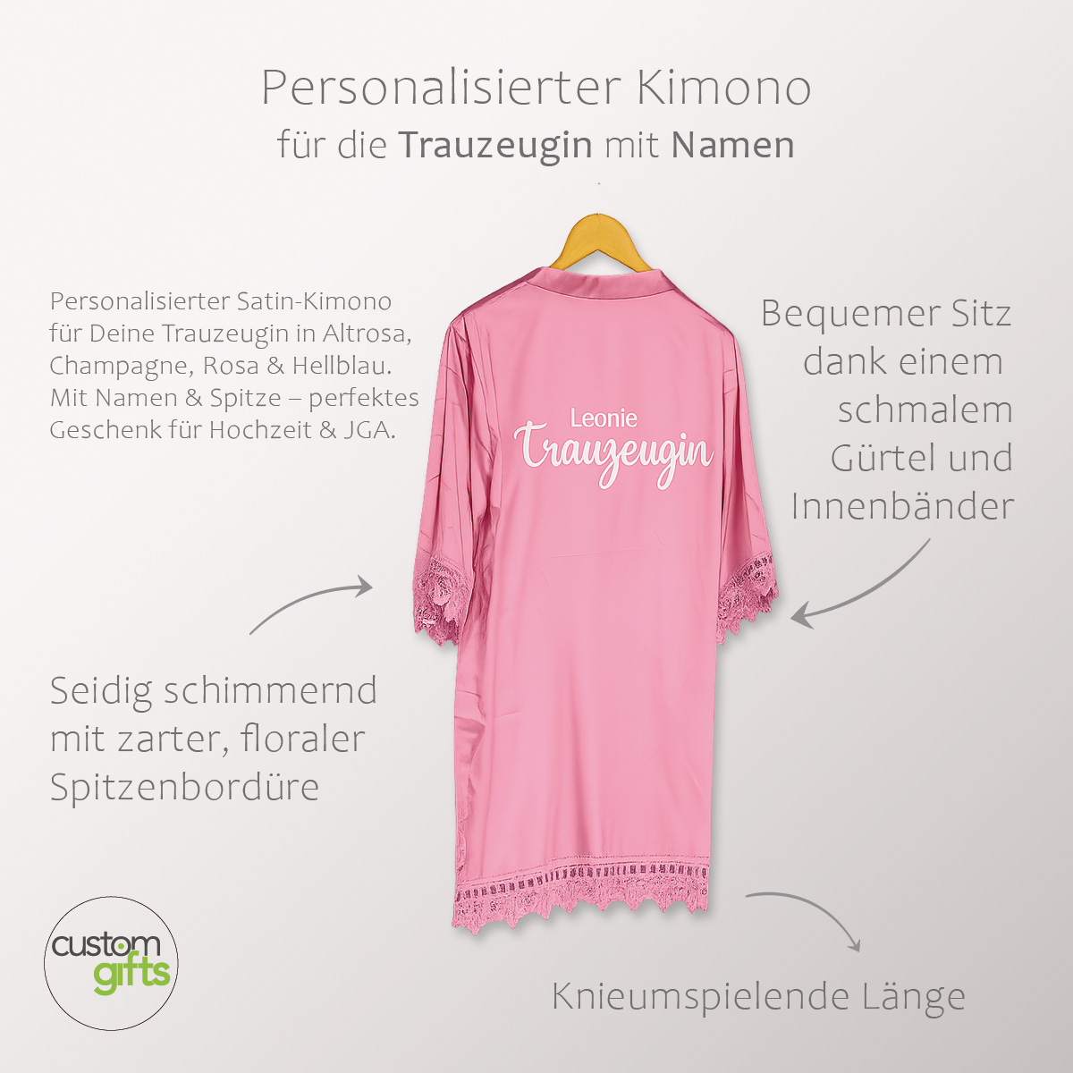 Personalisierter Satin-Kimono für die Trauzeugin – stilvoll, romantisch & einzigartig