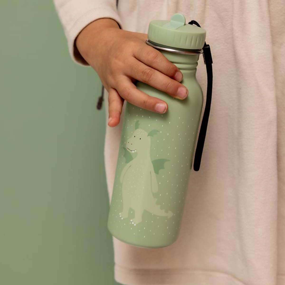 Die Flasche ist aus rostfreiem Stahl gefertigt und ist damit die ideale und nachhaltige Alternative zu Einweg-Plastikflaschen. Das Material ist leicht und stoßfest und gibt keine giftigen Stoffe an den Inhalt ab. Durch das schlichte Design ist die Flasche einfach zu reinigen. Verwenden Sie eine Flaschenbürste, warmes Wasser und Spülmittel oder spülen Sie die Flasche einfach im Geschirrspüler. Die Flaschen sind vollkommen dicht. Der praktische Verschluss ist so entworfen, dass kleine Händchen ihn leicht öffnen und schließen können. Jede Flasche ist mit einer Kordel versehen, so lässt sie sich prima tragen oder am Rucksack befestigen. Jedes Tierchen ist in zwei Größen erhältlich. Die kleine Flasche fasst 350 ml, die große 500 ml Flüssigkeit.