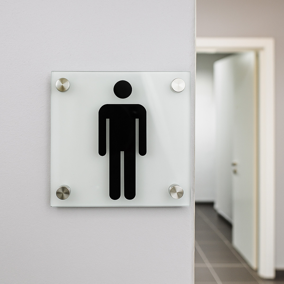 Elegantes Piktogramm-Türschild aus Glas für Innen und Außen