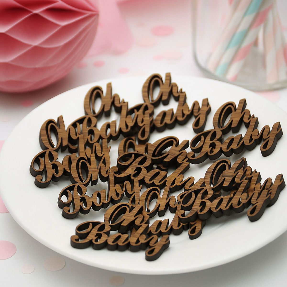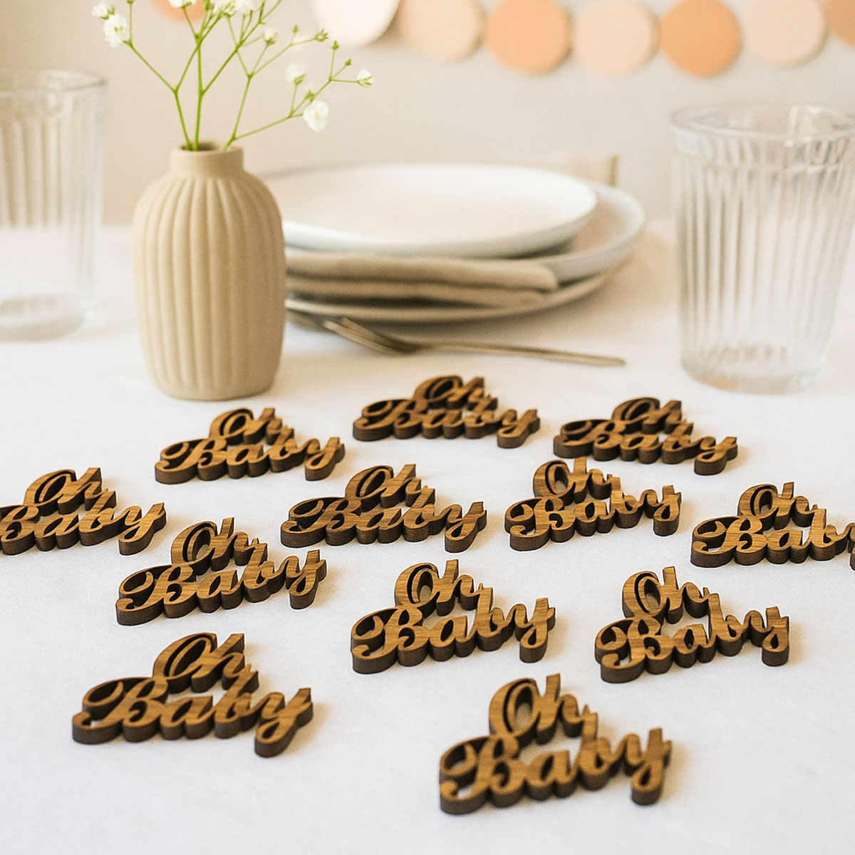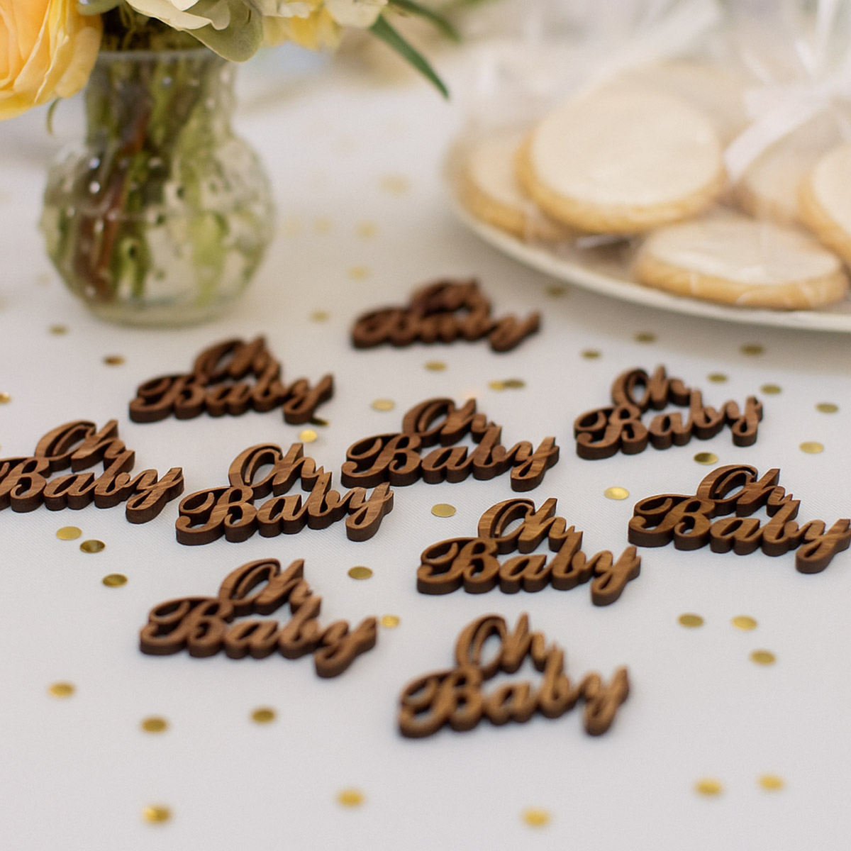 OH BABY – Holz Streudeko | Babyparty Tischdekoration | Nachhaltiges Konfetti aus Walnuss oder Eiche
