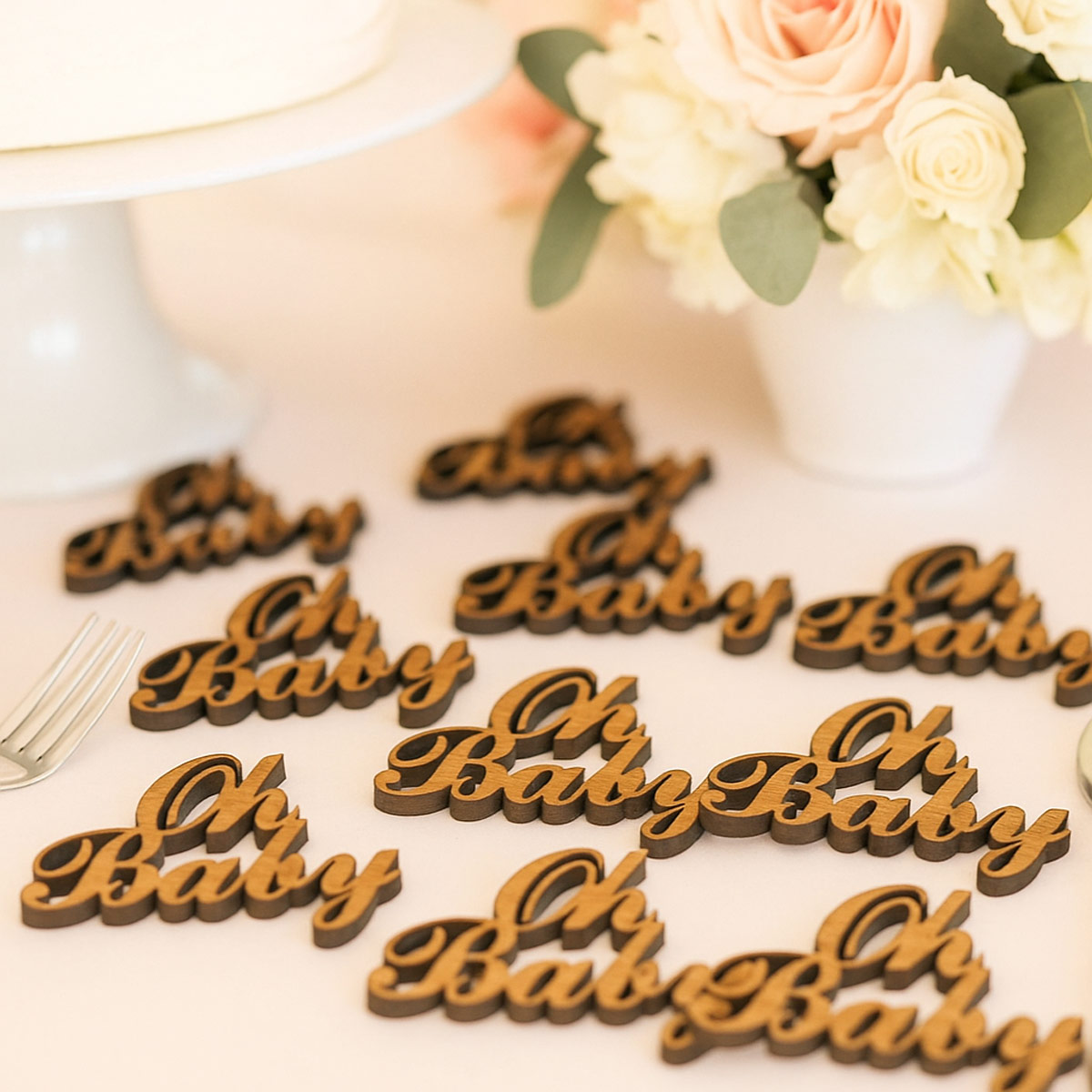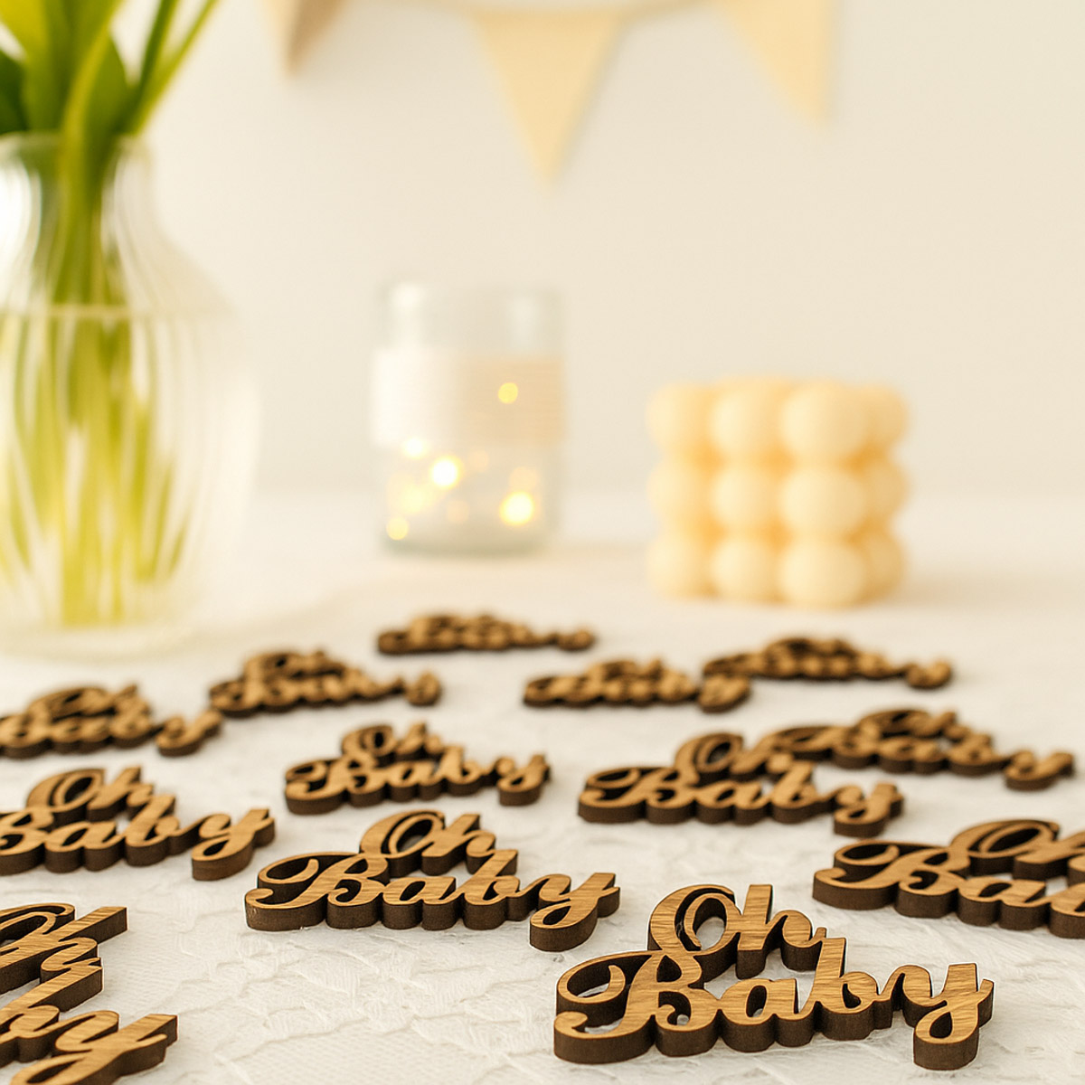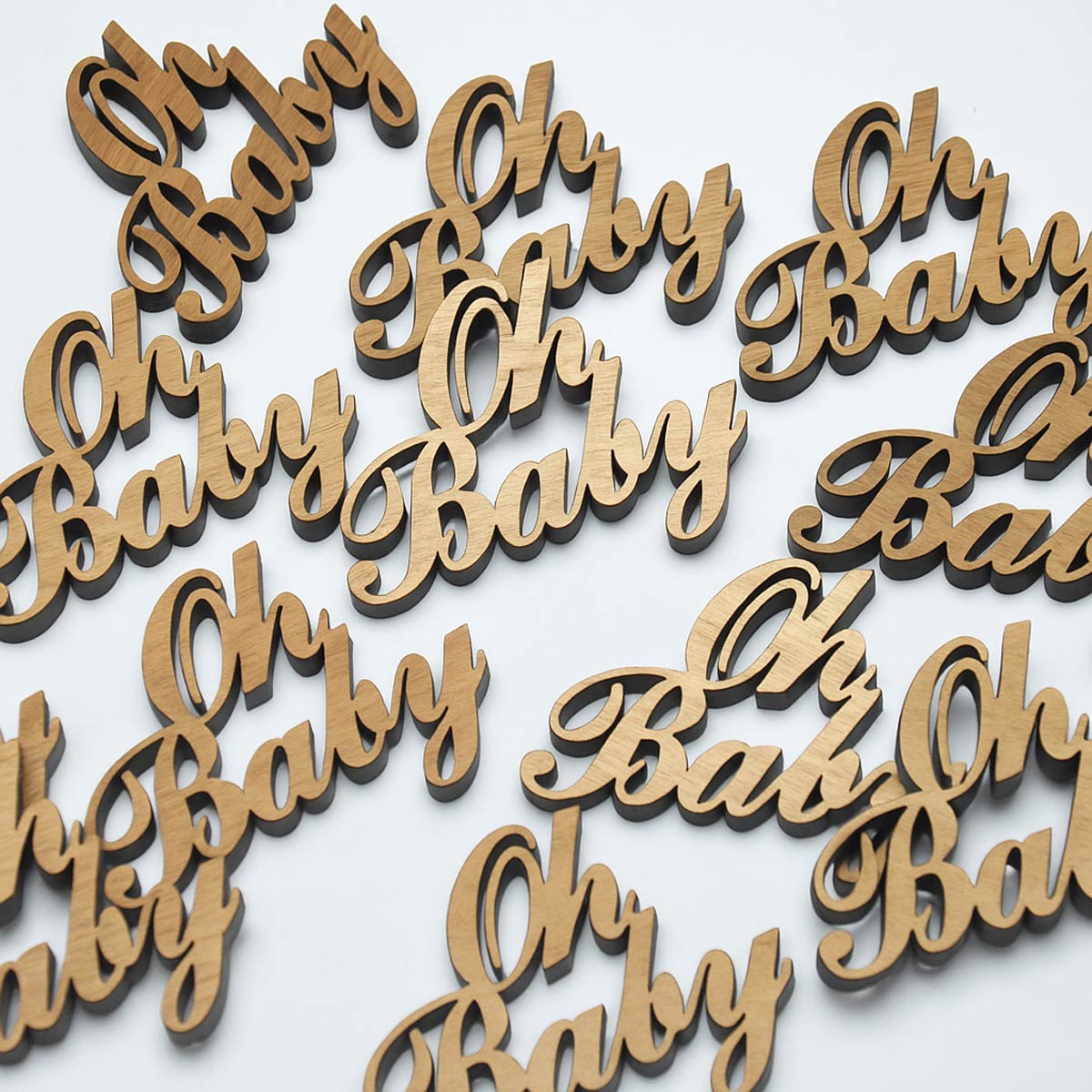 OH BABY – Holz Streudeko | Babyparty Tischdekoration | Nachhaltiges Konfetti aus Walnuss oder Eiche
