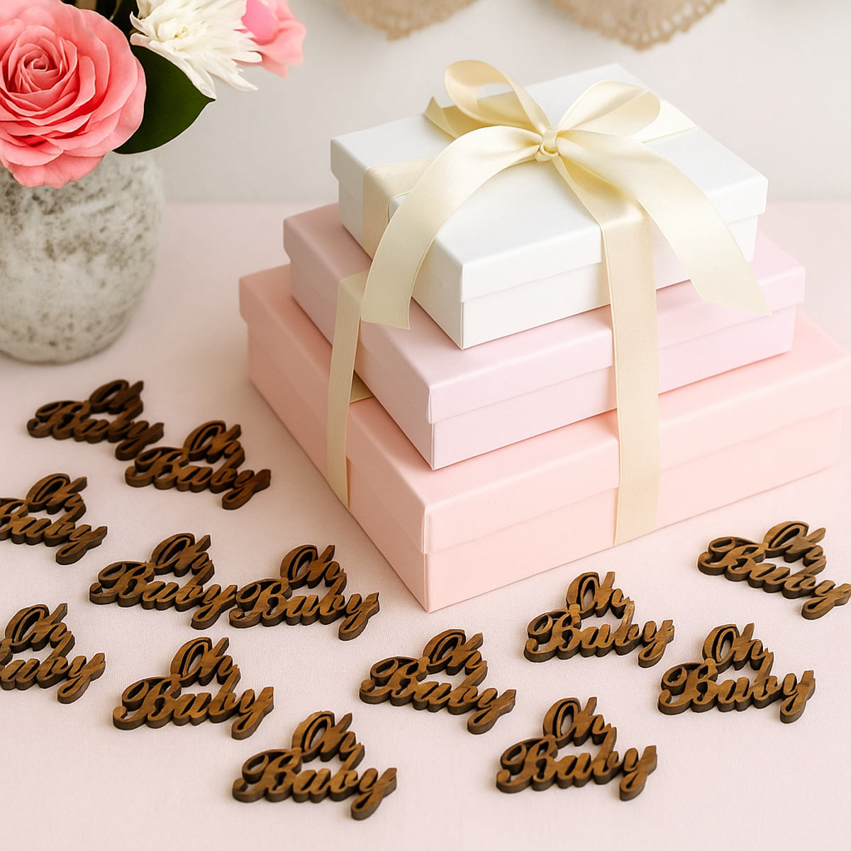 Feiere den besonderen Anlass mit unserer hochwertigen Streudeko aus Holz – die perfekte Tischdekoration für Babyparty, Taufe oder Babyshower. Die zarten Holzschriftzüge verleihen jeder Feier einen natürlichen, stilvollen Look. Als nachhaltiges Holzkonfetti oder liebevolles Accessoire setzen sie dezente Akzente auf Deiner Festtafel. Besonders schön wirken die Schriftzüge auf hellen Tischdecken oder in Kombination mit Pastelltönen.