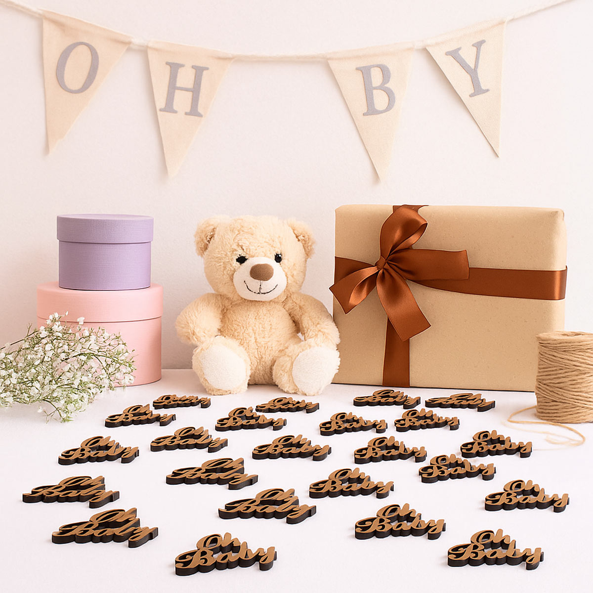 Unser Set enthält 20 Stück "OH BABY" Schriftzüge, die dank ihrer robusten Verarbeitung mehrfach verwendbar sind.