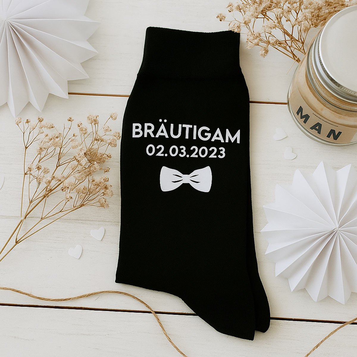 Socken für den Bräutigam – Personalisierte Hochzeitssocken mit Datum & Aufdruck