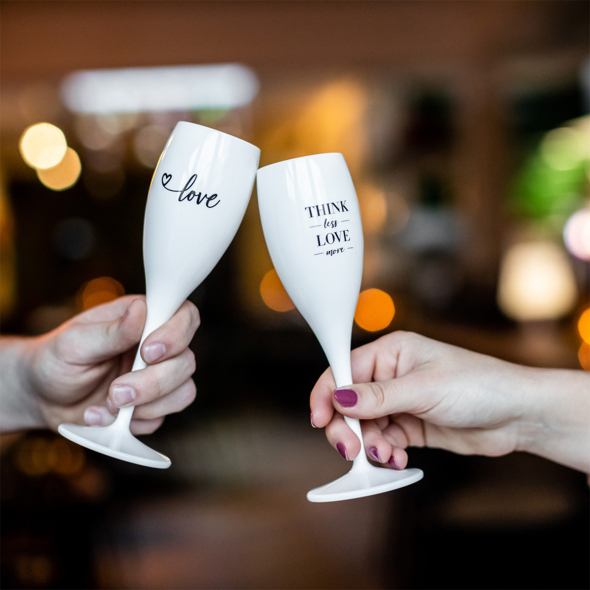 All you need is love! Ob für ein romantisches Dinner zu zweit oder eine rauschende Hochzeitsparty – CHEERS ist das perfekte Glas für alle romantischen Anlässe. Das hochwertige Material isoliert und hält die Getränke kühl, die hohe Form sorgt dafür, dass es länger sprudelt. Dazu ist das Glas nahezu unzerbrechlich und damit bestens geeignet für Hochzeiten, Geburtstage, Gartenfeste, Ausflüge und überall dort, wo Scherben weniger Glück bringen.