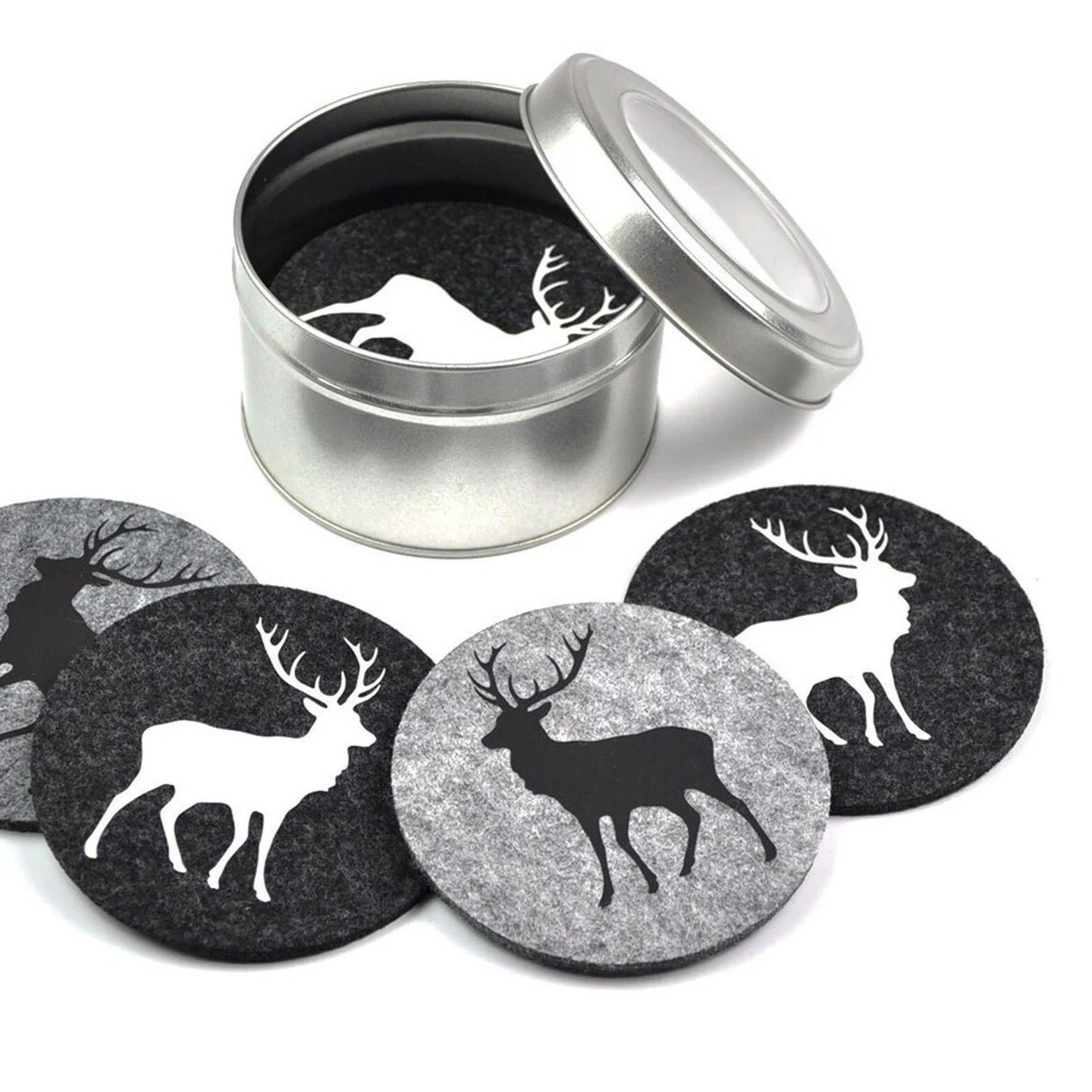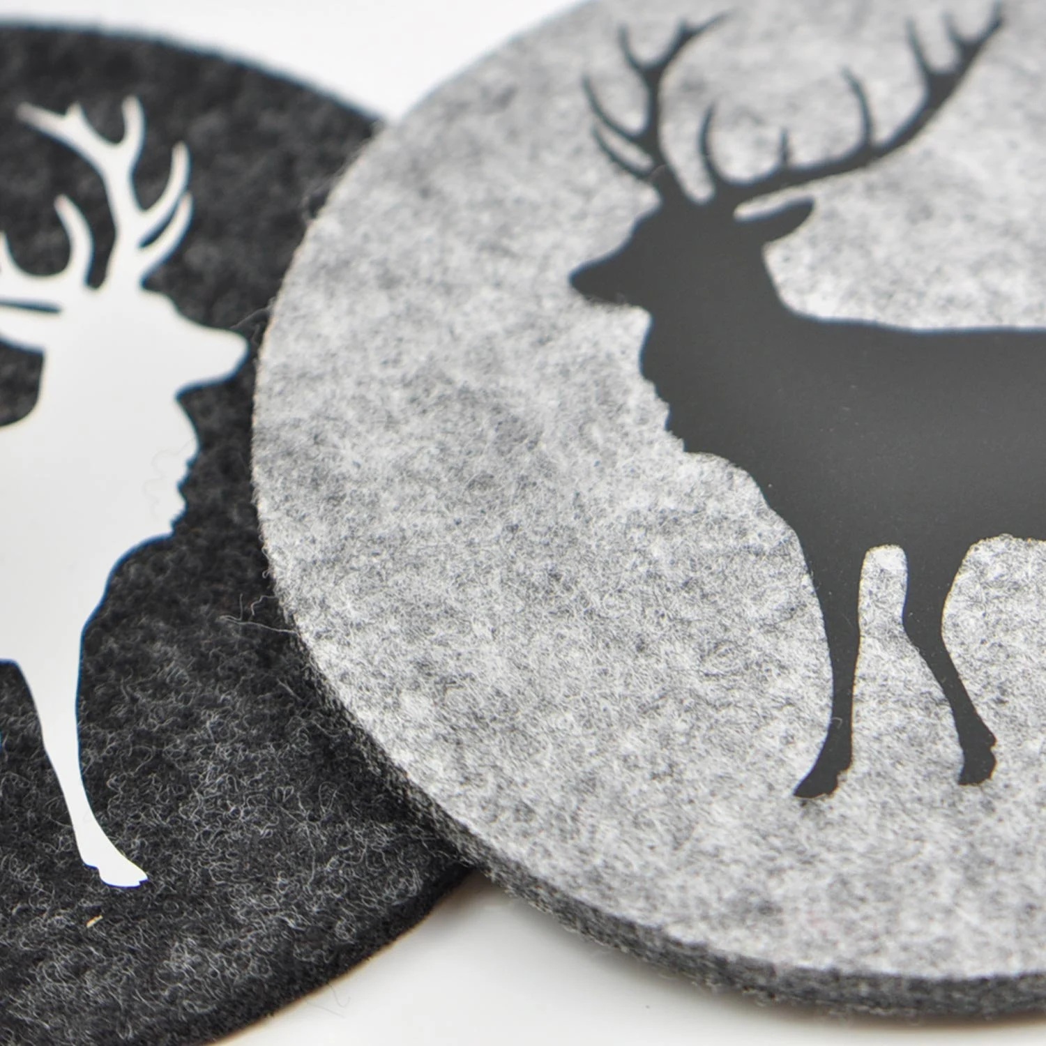 - Untersetzer aus 100% Wollfilz oder Polyester mit Hirschdruck