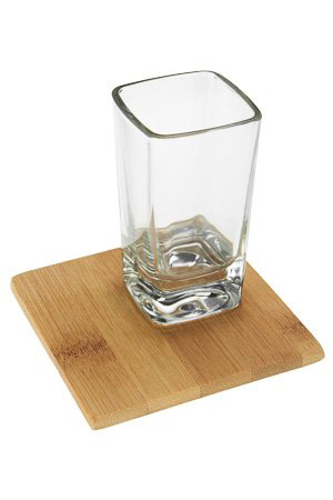 Natürliche Untersetzer aus Bambus – mit abgerundeten Ecken und passender Aufbewahrung.