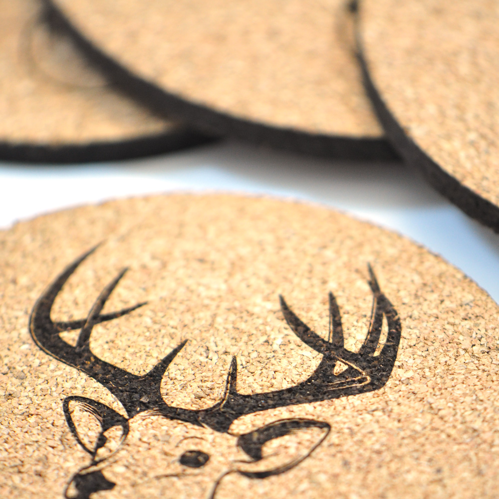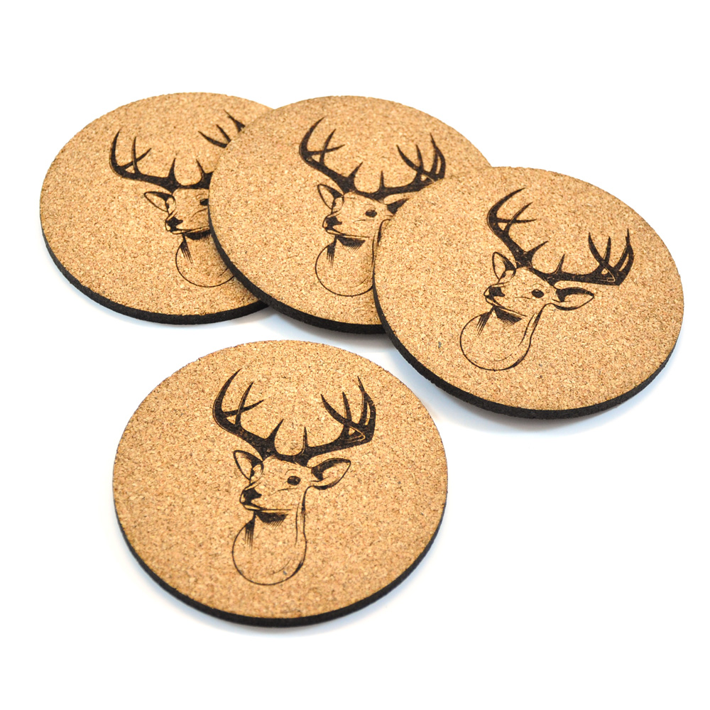 Korkuntersetzer mit Hirschkopf - robuste & nachhaltige Untersetzer aus Kork