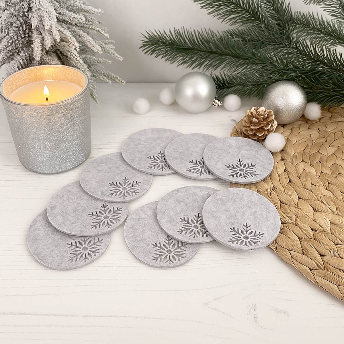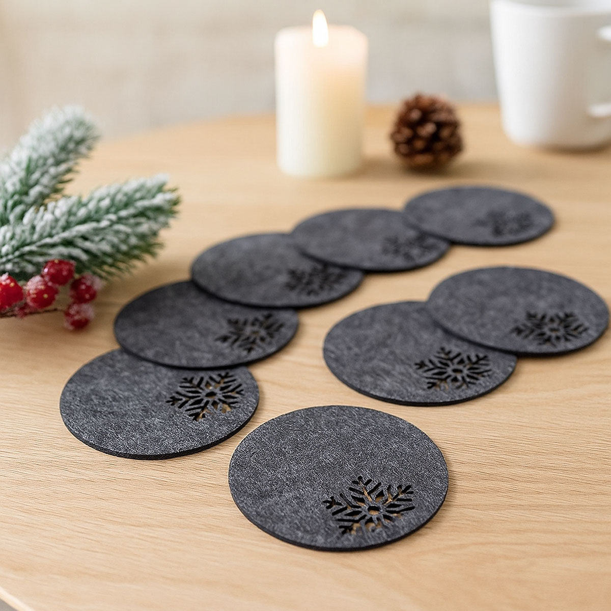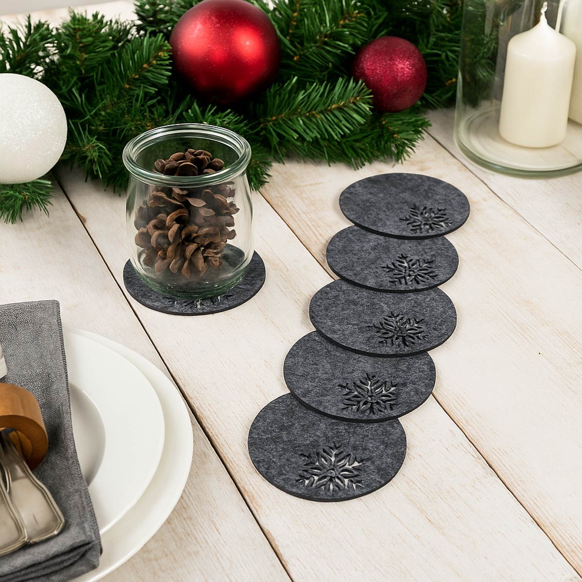 Die weichen Filzuntersetzer schützen sämtliche Oberflächen – etwa Glas, Holz, Lack, Metall oder Kunststoff – vor Hitze, Feuchtigkeit, Schmutz, Flecken, Stößen und Kratzern.