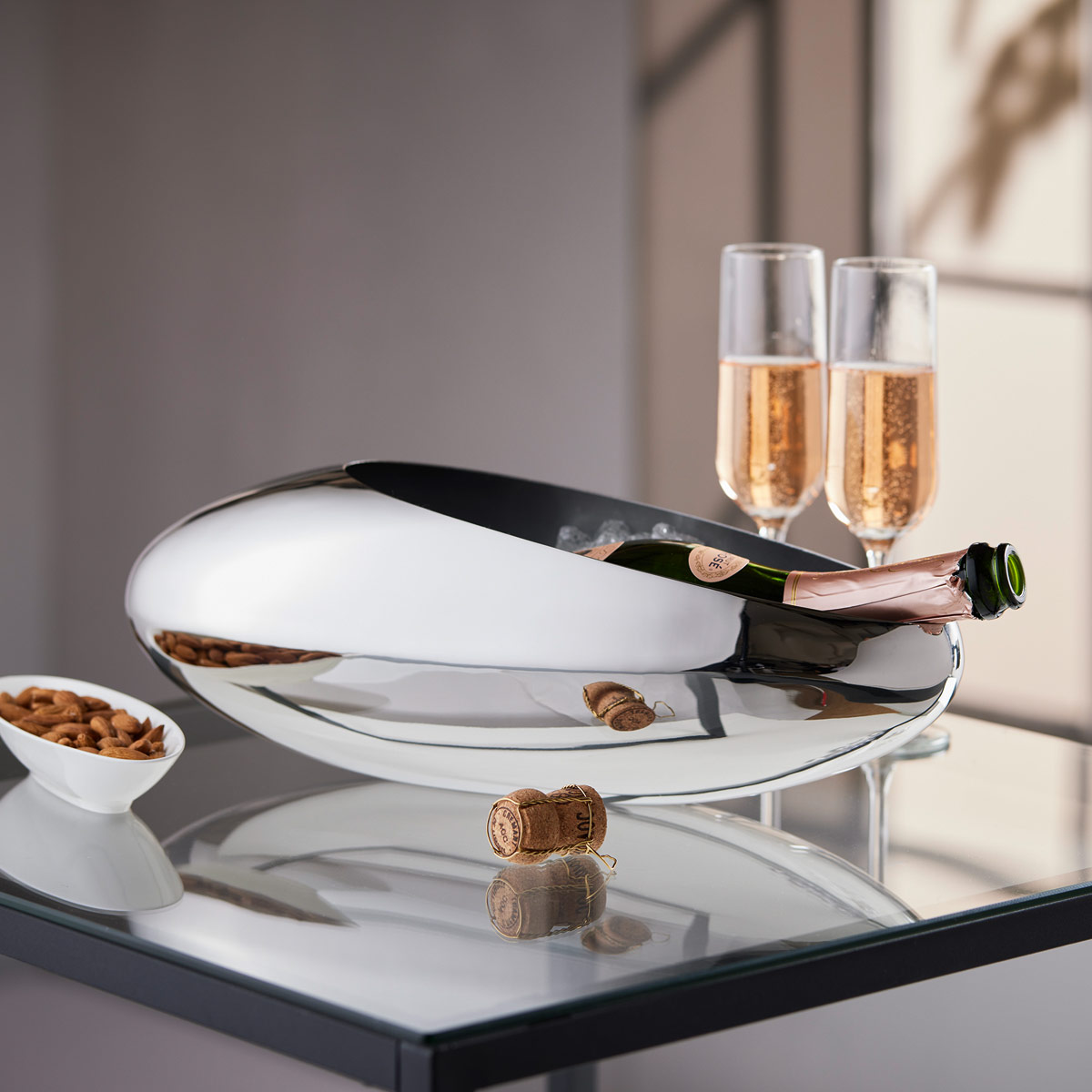 Edler können sowohl Champagner als auch Tulpen nicht präsentiert werden – im besten Fall gepaart nebeneinander! COCOON ist ein exquisites Stück Handarbeit, hochwertig und elegant. Ob als Champagnerkühler oder als Tulpenvase eingesetzt, der edle Tropfen wie auch die bezaubernden Blumen erhalten in COCOON einen mehr als ungewöhnlichen Auftritt, gebettet in hochglanzpoliertem Edelstahl.