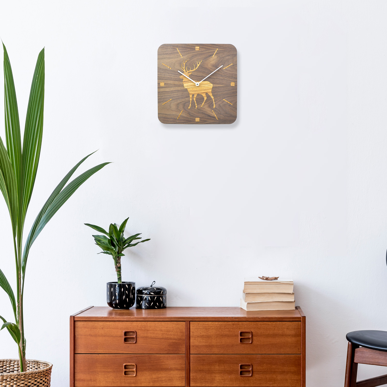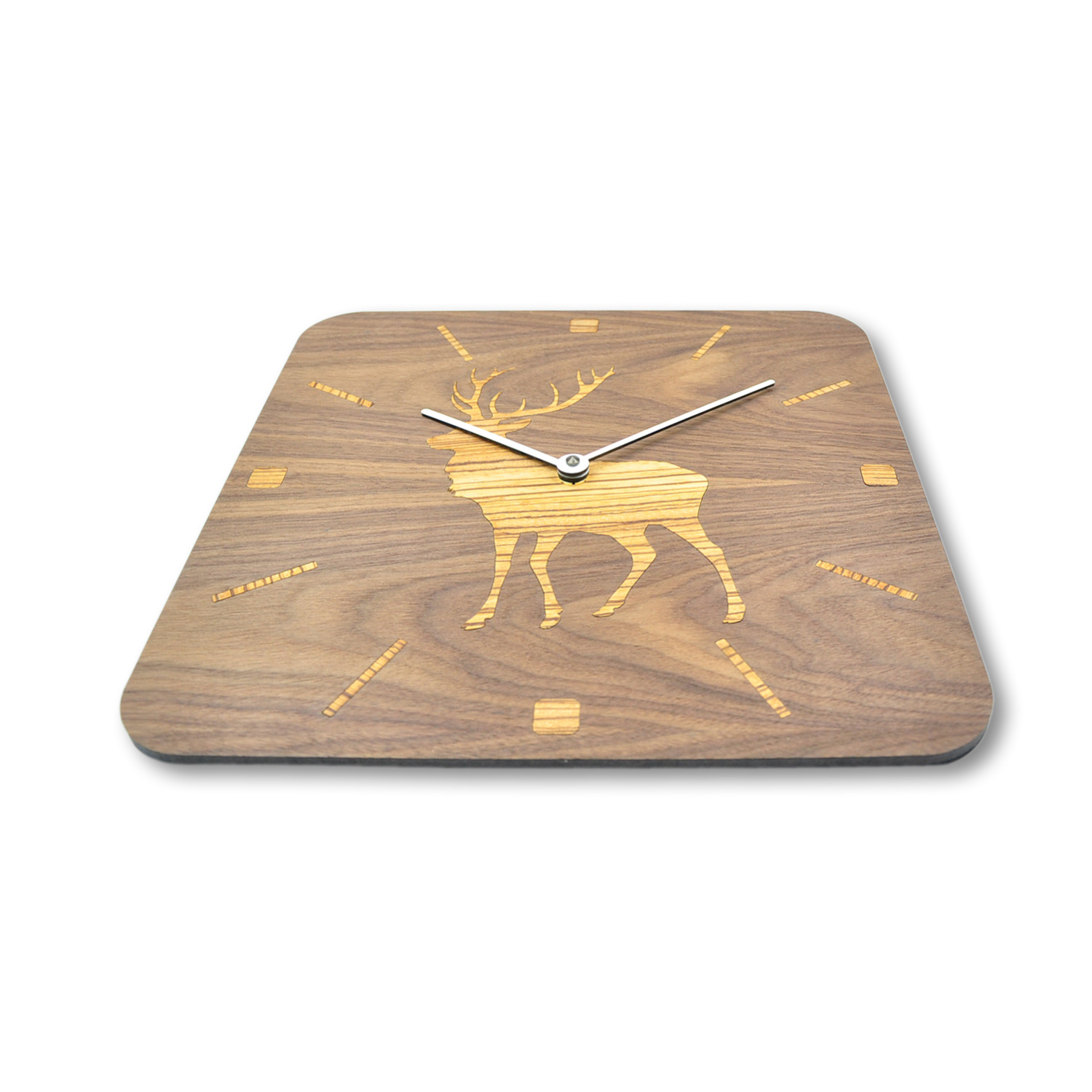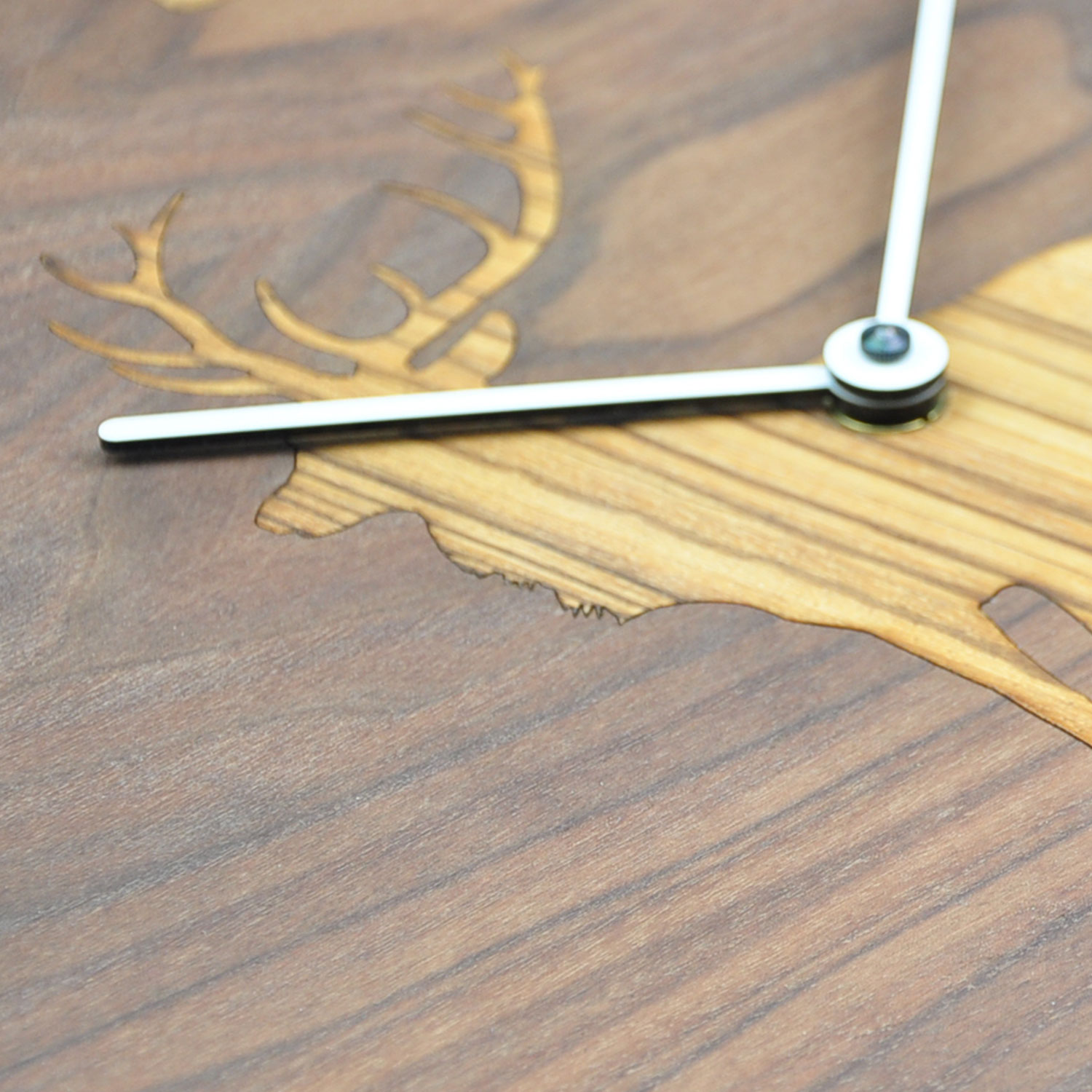 Wanduhr aus Holz mit großem Hirschen