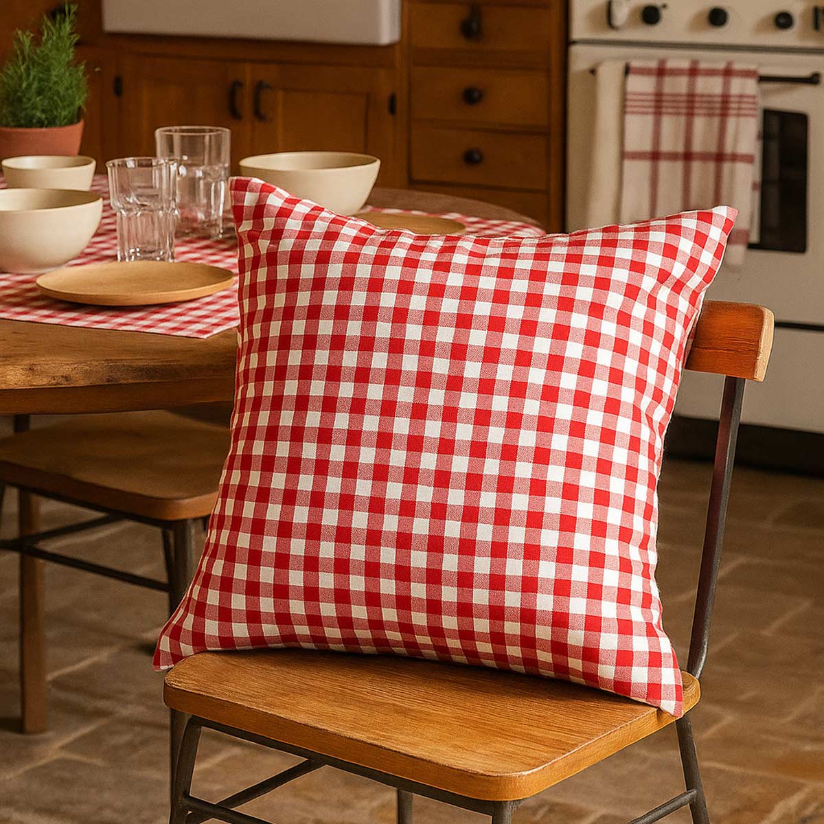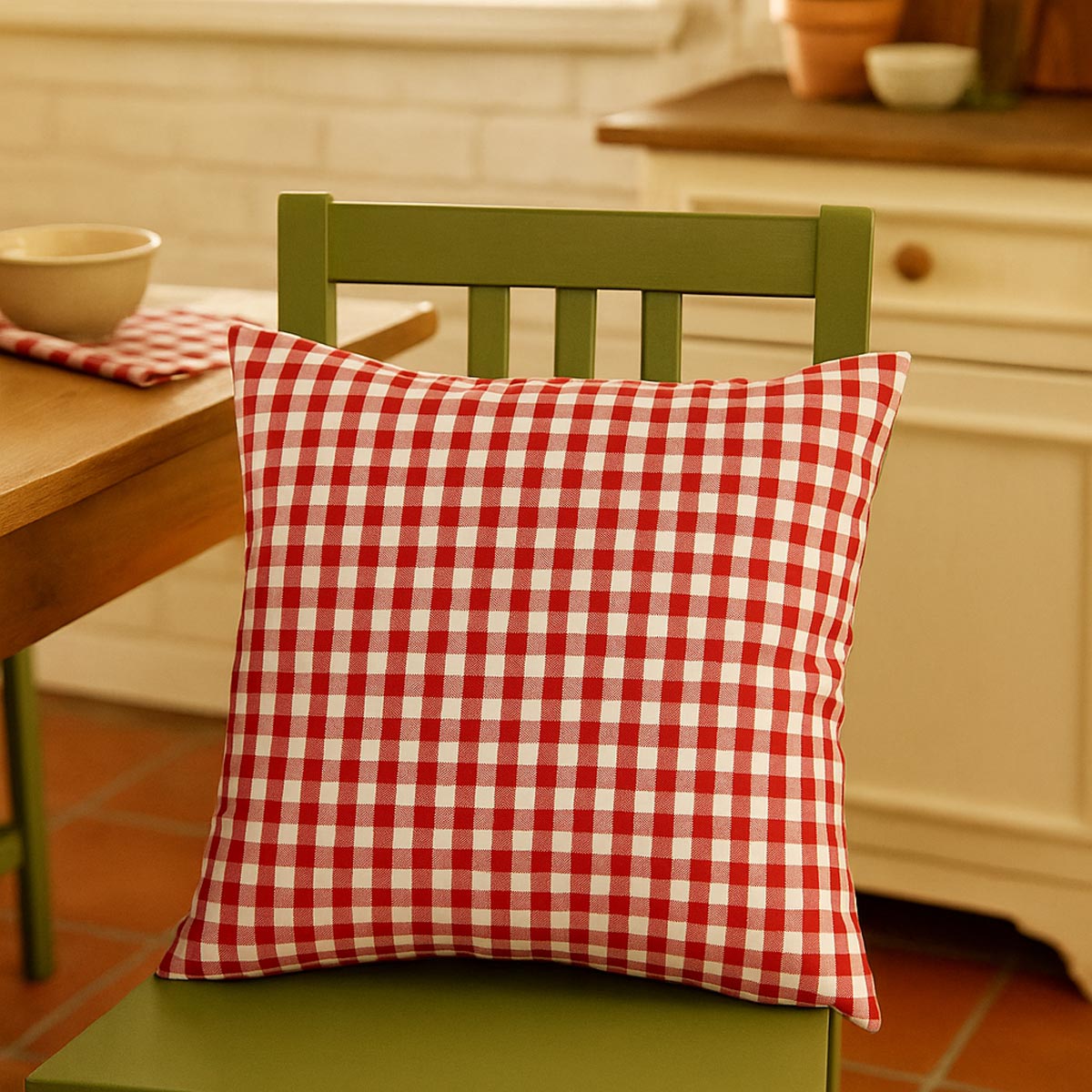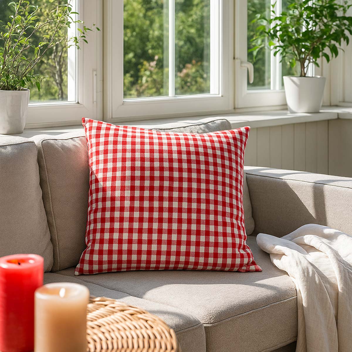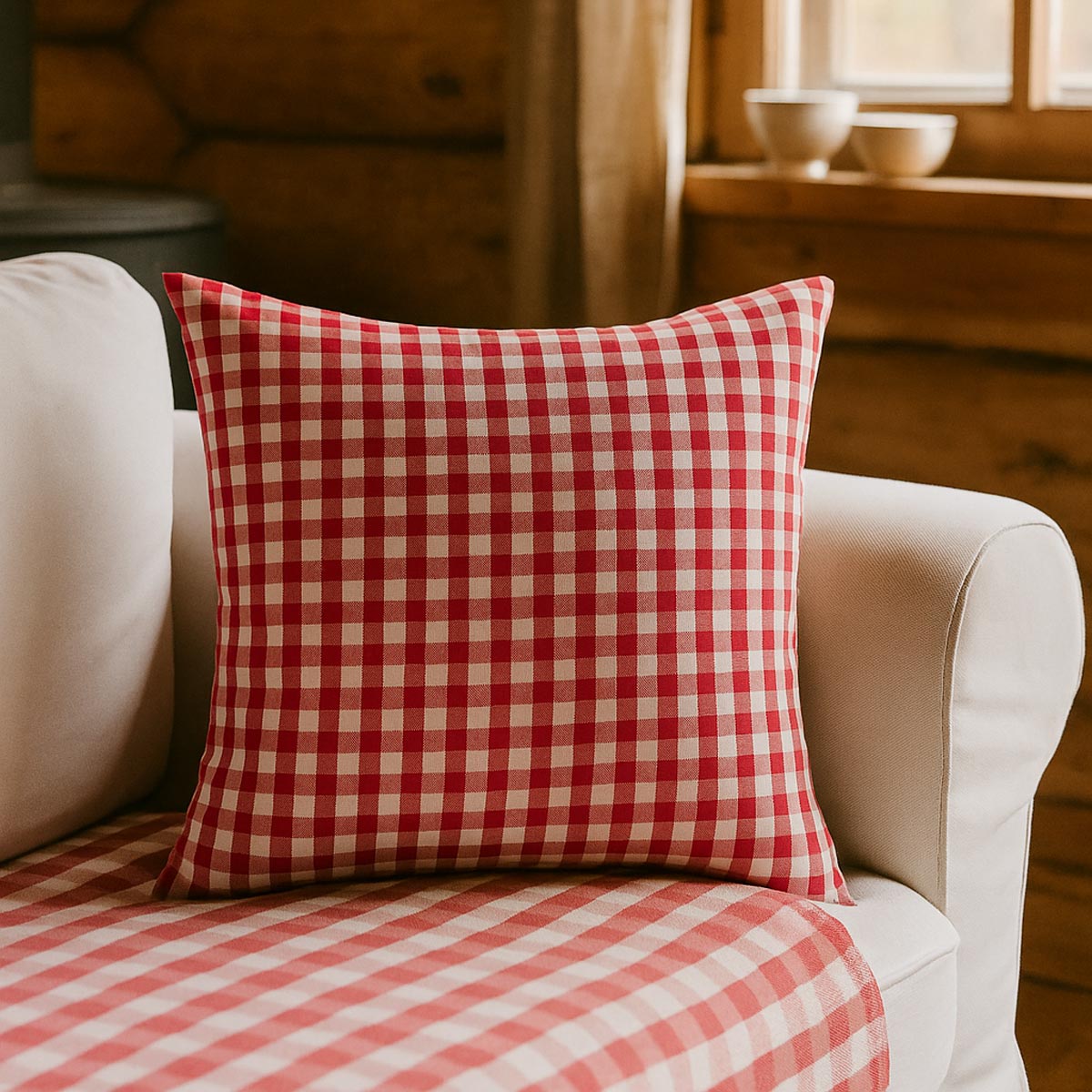 Diese hochwertige Kissenhülle aus reiner Baumwolle überzeugt durch ihr gemütliches Design im Landhausstil. Das klassische Karo-Muster in Rot-Weiß bringt Wärme, Stil und Behaglichkeit in jeden Raum – ob auf dem Sofa, der Gartenbank, im Schlafzimmer oder Wohnzimmer. Dank Hotelverschluss lässt sich der Bezug leicht wechseln, ohne störende Elemente wie Knöpfe oder Reißverschluss. Die robuste Baumwollqualität ist weich, angenehm im Griff, dabei bügelfrei und langlebig – perfekt für den täglichen Einsatz.