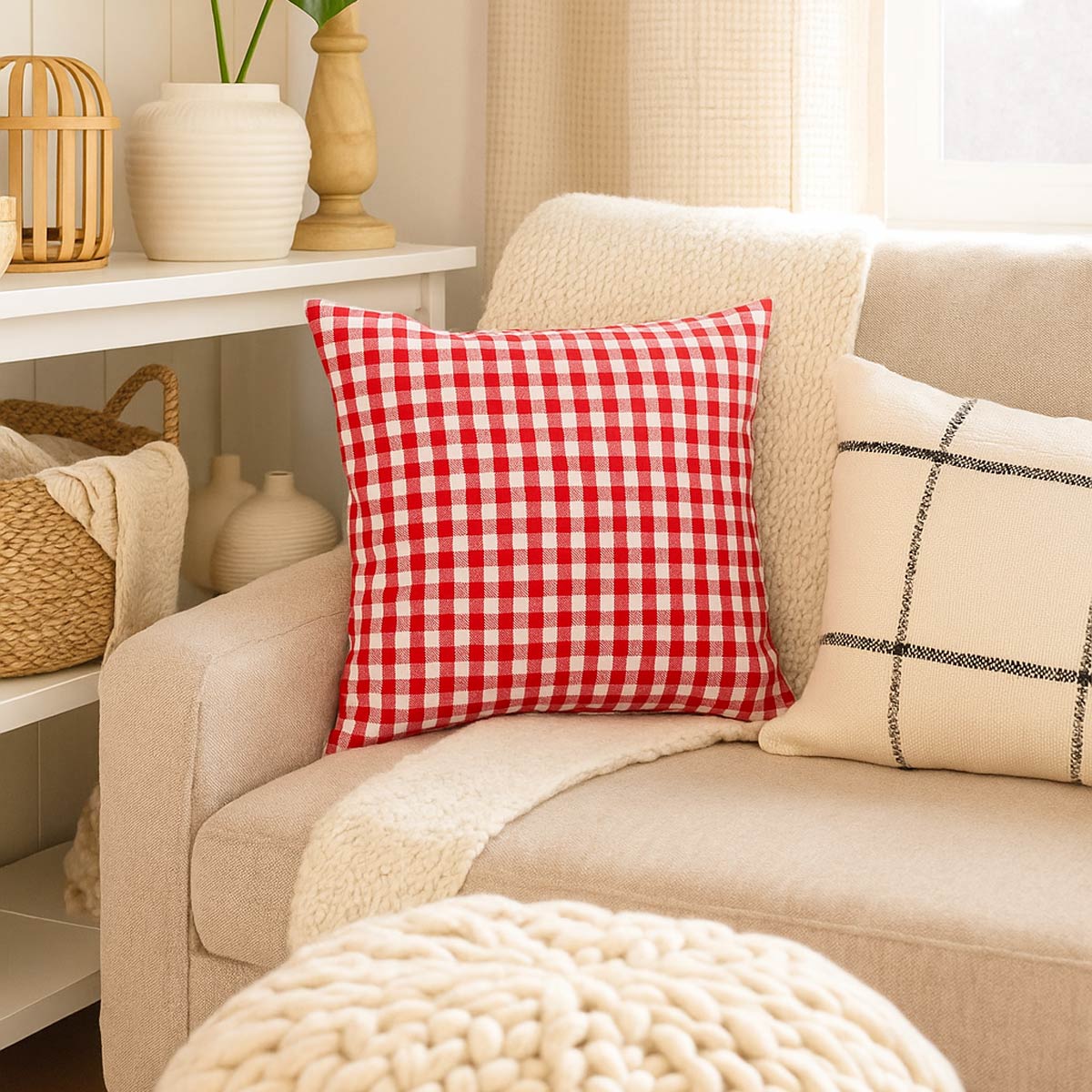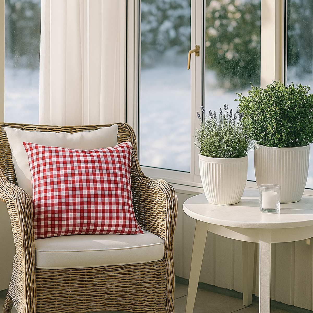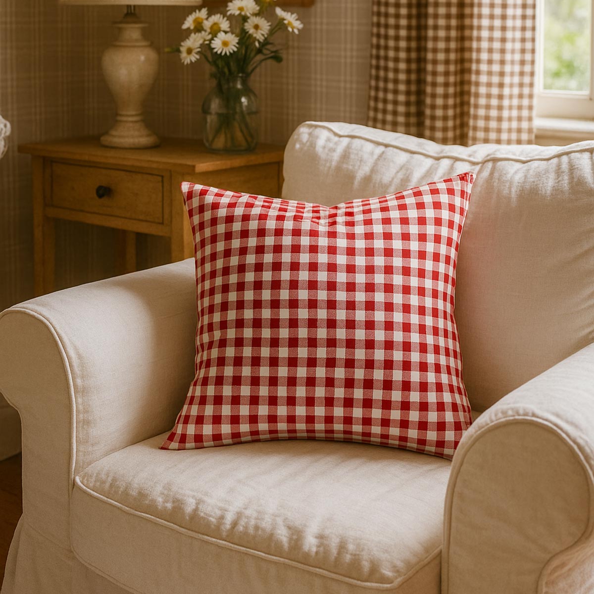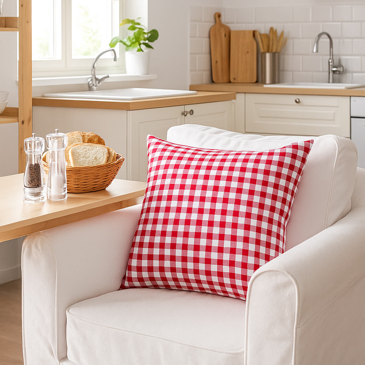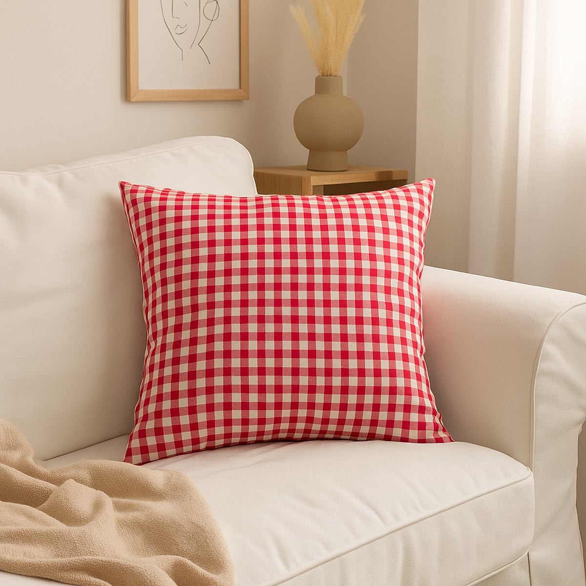 Diese hochwertige Kissenhülle aus reiner Baumwolle überzeugt durch ihr gemütliches Design im Landhausstil. Das klassische Karo-Muster in Rot-Weiß bringt Wärme, Stil und Behaglichkeit in jeden Raum – ob auf dem Sofa, der Gartenbank, im Schlafzimmer oder Wohnzimmer. Dank Hotelverschluss lässt sich der Bezug leicht wechseln, ohne störende Elemente wie Knöpfe oder Reißverschluss. Die robuste Baumwollqualität ist weich, angenehm im Griff, dabei bügelfrei und langlebig – perfekt für den täglichen Einsatz.